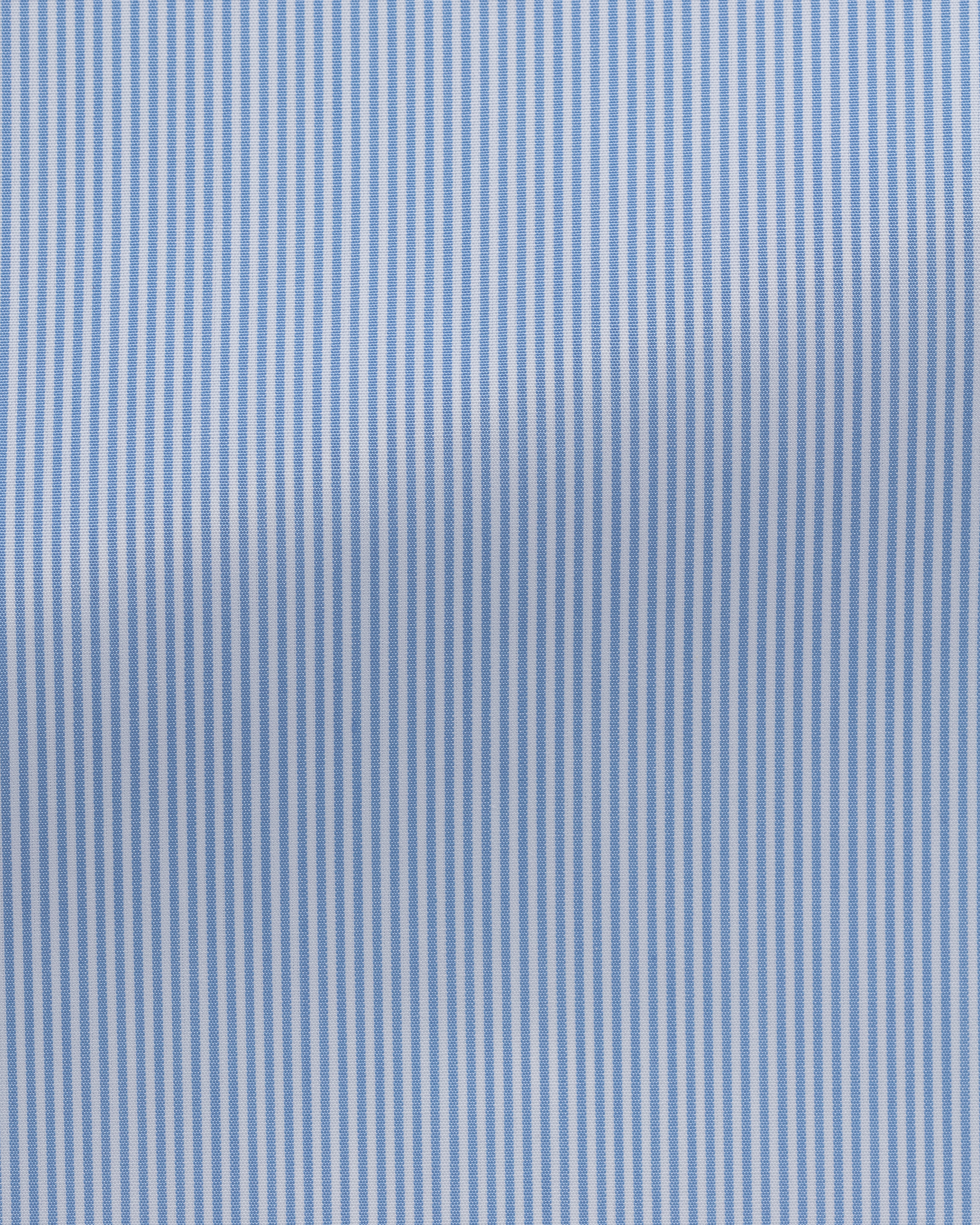 Refined yet bold, this shirt is a perfect blend of tradition and innovation. The white cotton poplin, expertly crafted from fine twisted yarns, features a blue statement stripe with crisp definition. Finished with calendering, sanforizing, and mercerizing for a compact yet airy feel with remarkable softness and durability. Prefer a different style? Every piece is made exclusively for you, with your choice of design options. 100% cotton Compact poplin Fine twisted yarns Breathable Durable