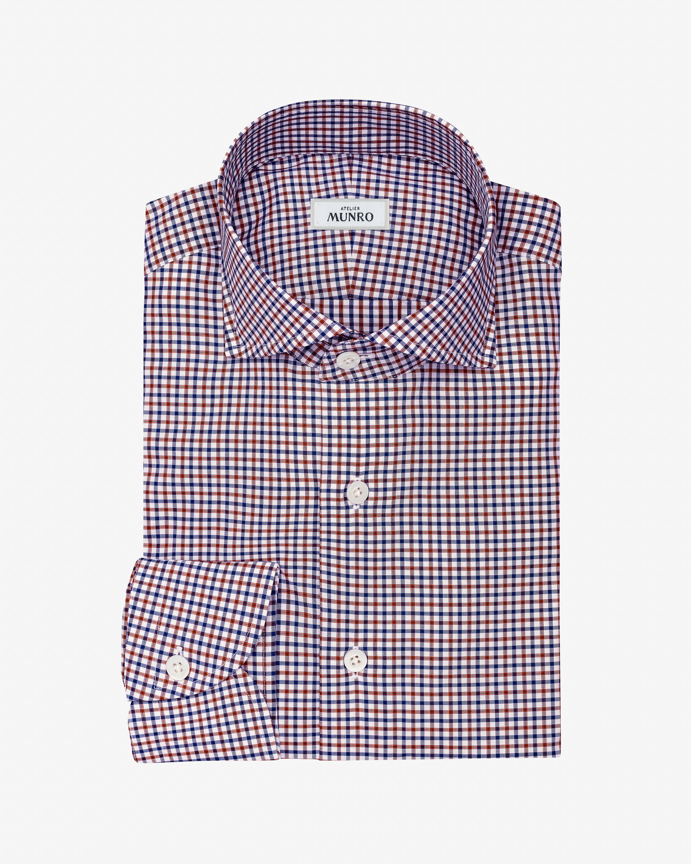 This shirt with a two-tone gingham check in navy blue and red is a smart choice for effortless work-to-weekend dressing. Crafted from fine cotton, it combines natural breathability with a smooth feel and elegant drape. Featuring a special finish for enhanced softness and easy wearing without added stretch or non-iron treatments. Prefer a different style? Every piece is made exclusively for you, with your choice of design options. 100% cotton Tattersall check Breathable Smooth feel Easy care