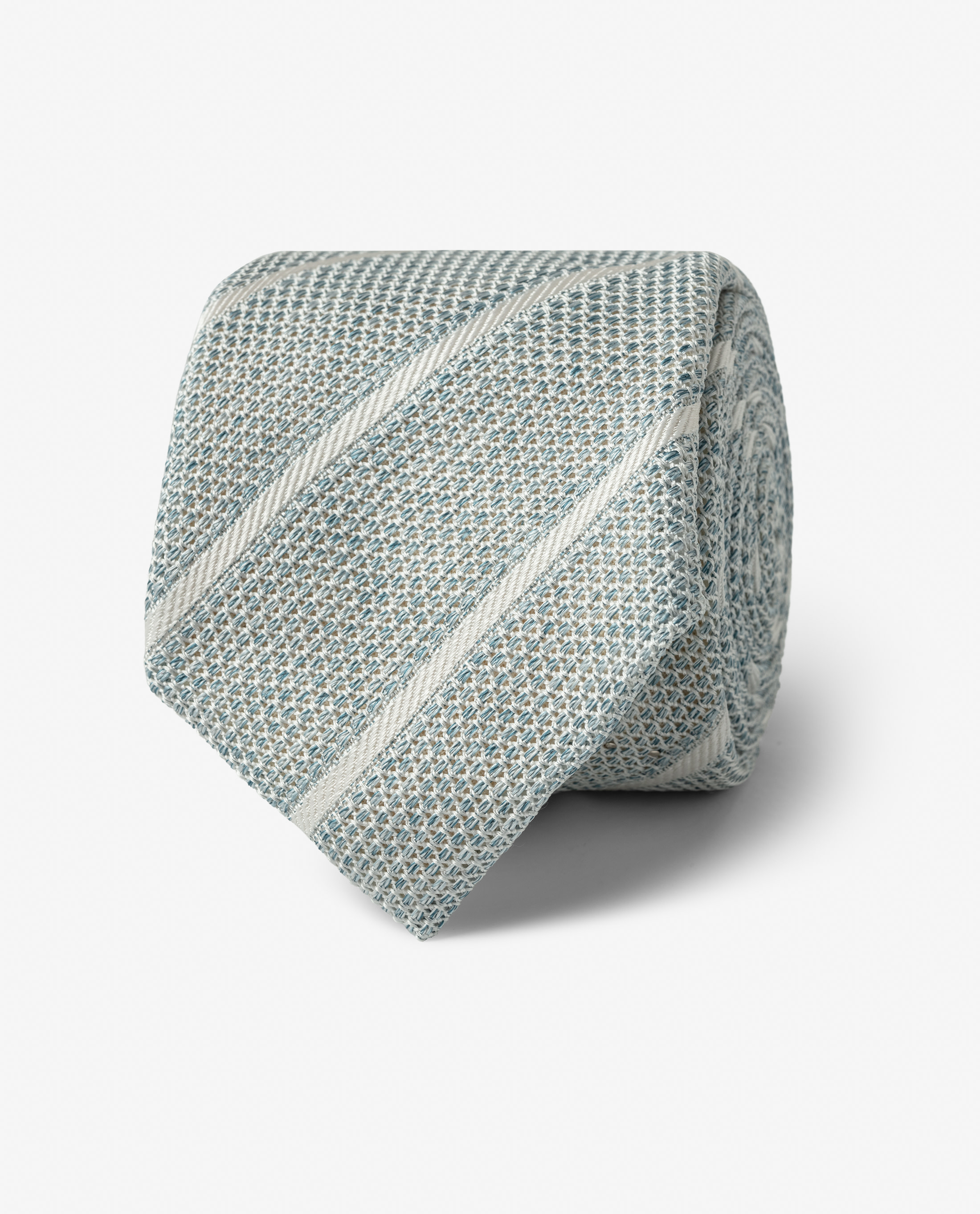 Bring a touch of effortless sophistication to your seasonal wardrobe with this heathered light blue silk tie, featuring thin white stripes against a highly sartorial grenadine weave. Offering a refined yet relaxed charm that's ideal for spring and summer weddings, special events, or to add a sense of understated elegance to any professional look. Designed here with a tipped finish and 7cm width. Make this tie your own with your choice of design options and a custom monogram. Handmade 100% silk Grenadine weave Classic stripes