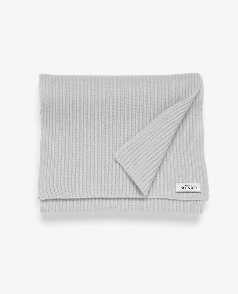 Keep the cold at bay with this luxurious light gray scarf in a ribbed design. Made from pure cashmere for a soft and lightweight feel with superior warmth. An accessory that will last for years to come and improve with age.