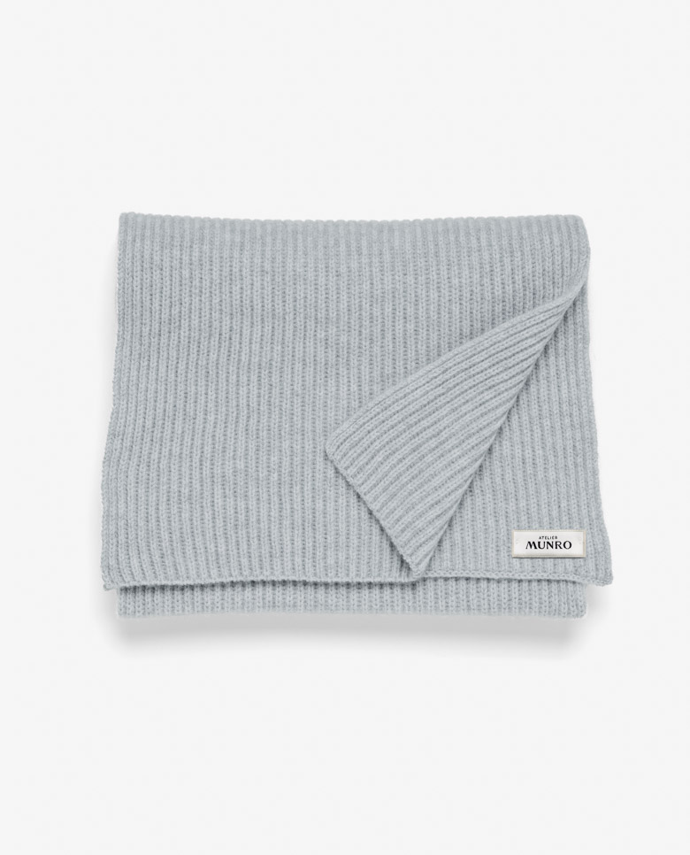 Keep the cold at bay with this luxurious ribbed scarf in light heathered gray. Made from pure cashmere for a soft and lightweight feel with superior warmth. An accessory that will last for years to come and improve with age.