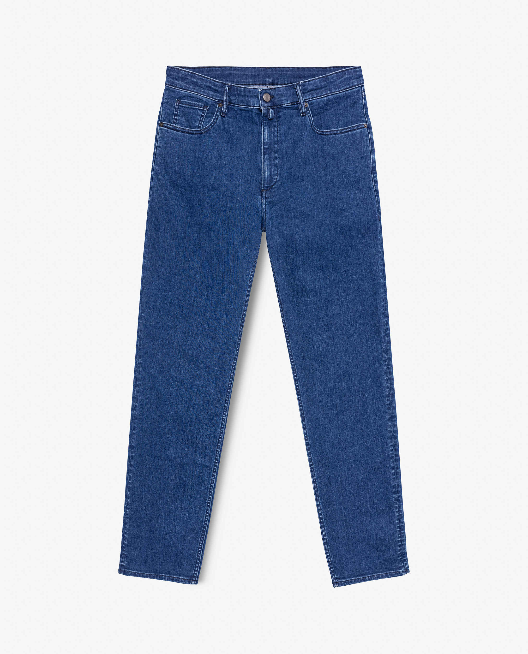 Our most comfortable denim option, these 9oz. mid blue jeans are super lightweight with superior stretch. Made from a soft cotton blend twill by Candiani that is woven, dyed, and washed in Italy. Designed here with a faded wash. Make these jeans your own with our many customization options to choose from.
