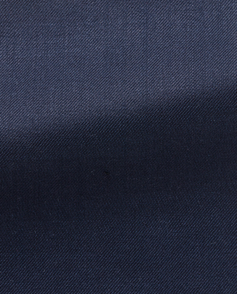 A clean-cut, four-season medium blue twill in a wool blend with a touch of stretch.