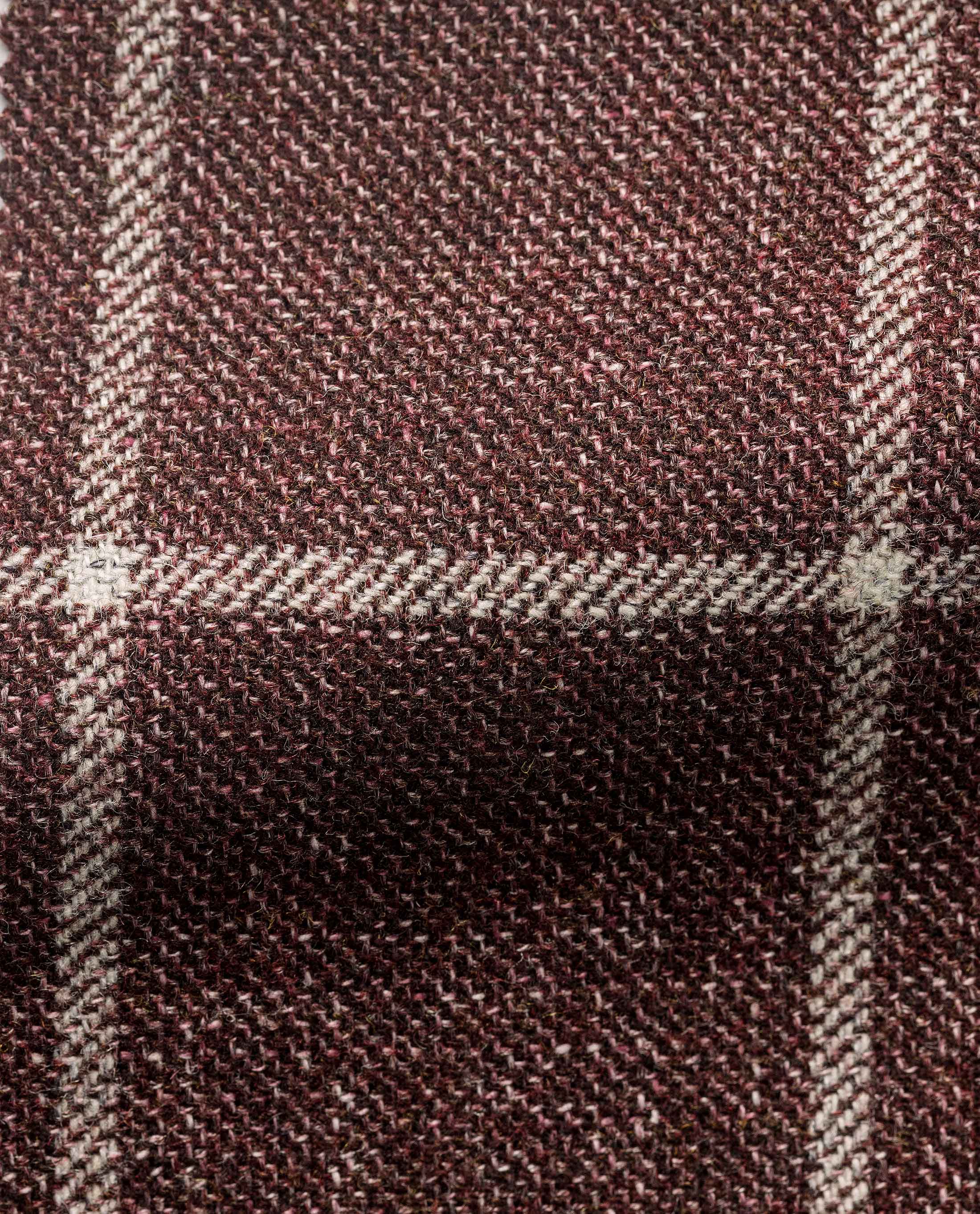 This maroon heathered wool decorated with white windowpane checks is perfect for occasions that call for an extra style statement. The fabric, woven from wools exclusively gathered from Australia and South Africa, offers extra breathability and natural comfort, is made all the more interesting by double-twisted yarns that create a stronger construction and speckled effect.