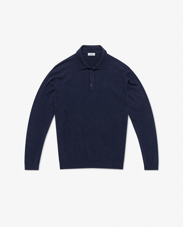 This midnight blue knit is a warm layer you can wear every day. Made from a mix of ultra-fine Australian wool and soft Inner Mongolian cashmere, 3D-knitted for a luxurious seamless look. Designed here as a polo with buttons, in single yarns for a lighter wear. Make this knitwear your own from our customization options.