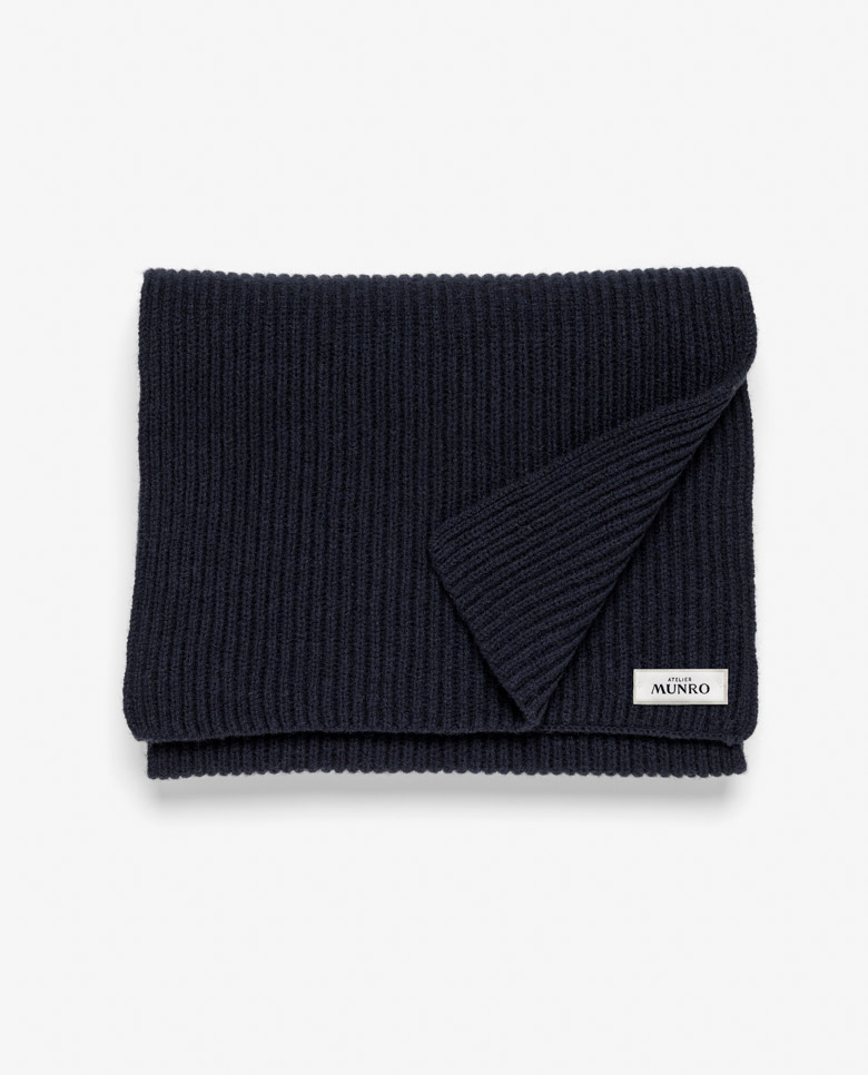 Wrap yourself up for winter with this midnight blue ribbed scarf. Made from a high-quality blend of 90% Australian wool and 10% Inner Mongolian cashmere. The mix of ultra-fine wool with soft cashmere offers warmth you can wear every day.