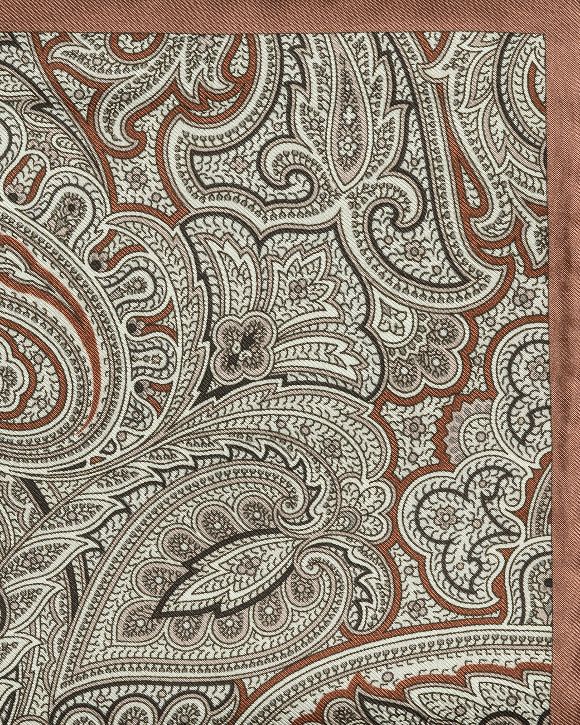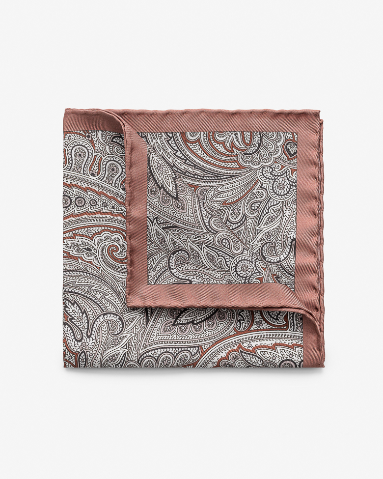 This dusty pink pocket square with paisley print is a celebration of artistry and timeless design. Woven from pure silk and printed exclusively in Como, Northern Italy, it’s the perfect companion when forgoing a tie. Designed here with a hand-rolled edge for added elegance. Make this pocket square your own with a monogram. 100% silk Paisley print Hand rolled