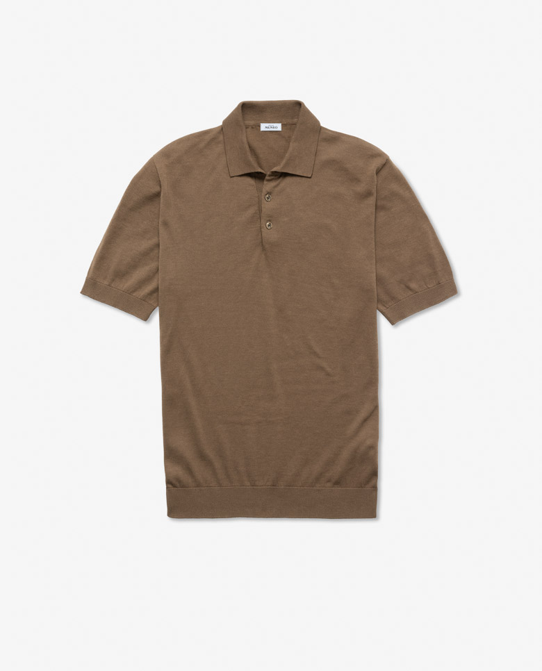Lightweight with shine especially visible in the sunlight, consider this mocha polo your quintessential summer knit. Seamlessly knitted from a luxe blend of breathable Egyptian cotton with mulberry silk, adding even more elegance, softness, and drape. Designed here with short sleeves, in single ply for the lightest wear possible. Make this knitwear your own with our customization options.