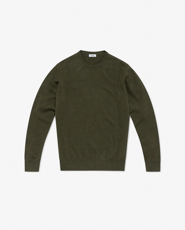 This moss green knit is a warm layer you can wear every day. Made from a mix of ultra-fine Australian wool and soft Inner Mongolian cashmere, 3D-knitted for a luxurious seamless look. Designed here as a crew neck, in single yarns for a lighter wear. Make this knitwear your own with our many customization options to choose from.