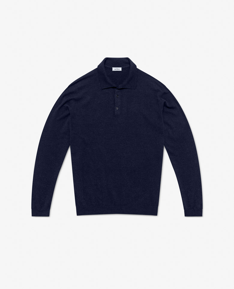This navy blue knit will keep you cool in summer and warm enough in winter. The high-quality blend combines the drape and shine of silk with luxurious cashmere. Crafted on 3D-knitting machines for a sophisticated seamless look. Designed here as a polo with buttons, in single ply for a lighter wear. Make this knitwear your own with our customization options.