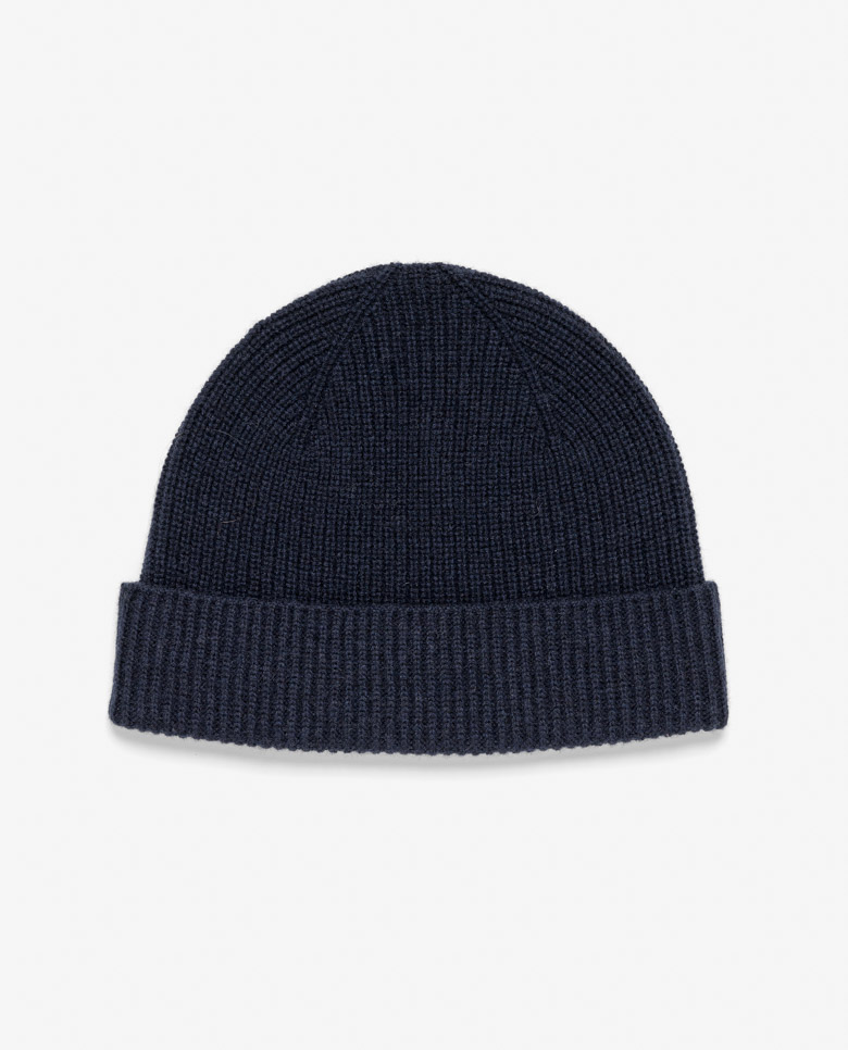 Ideal for the height of winter, this navy blue ribbed beanie is cozy and comfortable. Made from a high-quality blend of 90% Australian wool with 10% Inner Mongolian cashmere. The mix of ultra-fine wool and soft cashmere offers warmth you can wear every day.