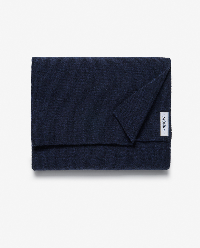 Wrap yourself up for winter with this navy blue scarf. Made from a high-quality blend of 90% Australian wool and 10% Inner Mongolian cashmere. The mix of ultra-fine wool with soft cashmere offers warmth you can wear every day. Wool & cashmere Warm Soft feel