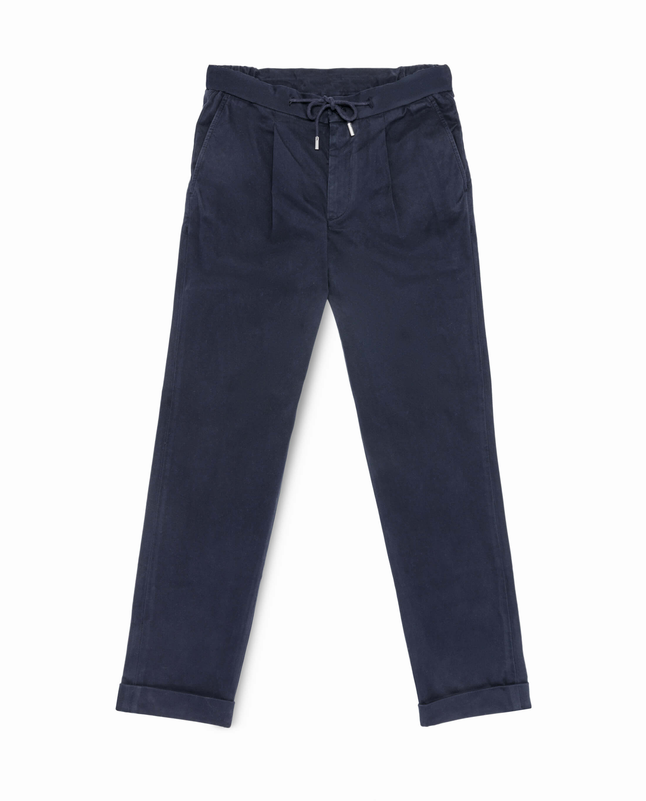 These navy chinos are a must-have for any season. Made from stretch cotton by Olimpias in a broken twill for a solid yet comfortable construction. Dyed as a whole to give a washed color variation along the seams and extra color in the lining. Designed here with a drawstring and single pleats. Make these chinos your own with our many customization options to choose from.
