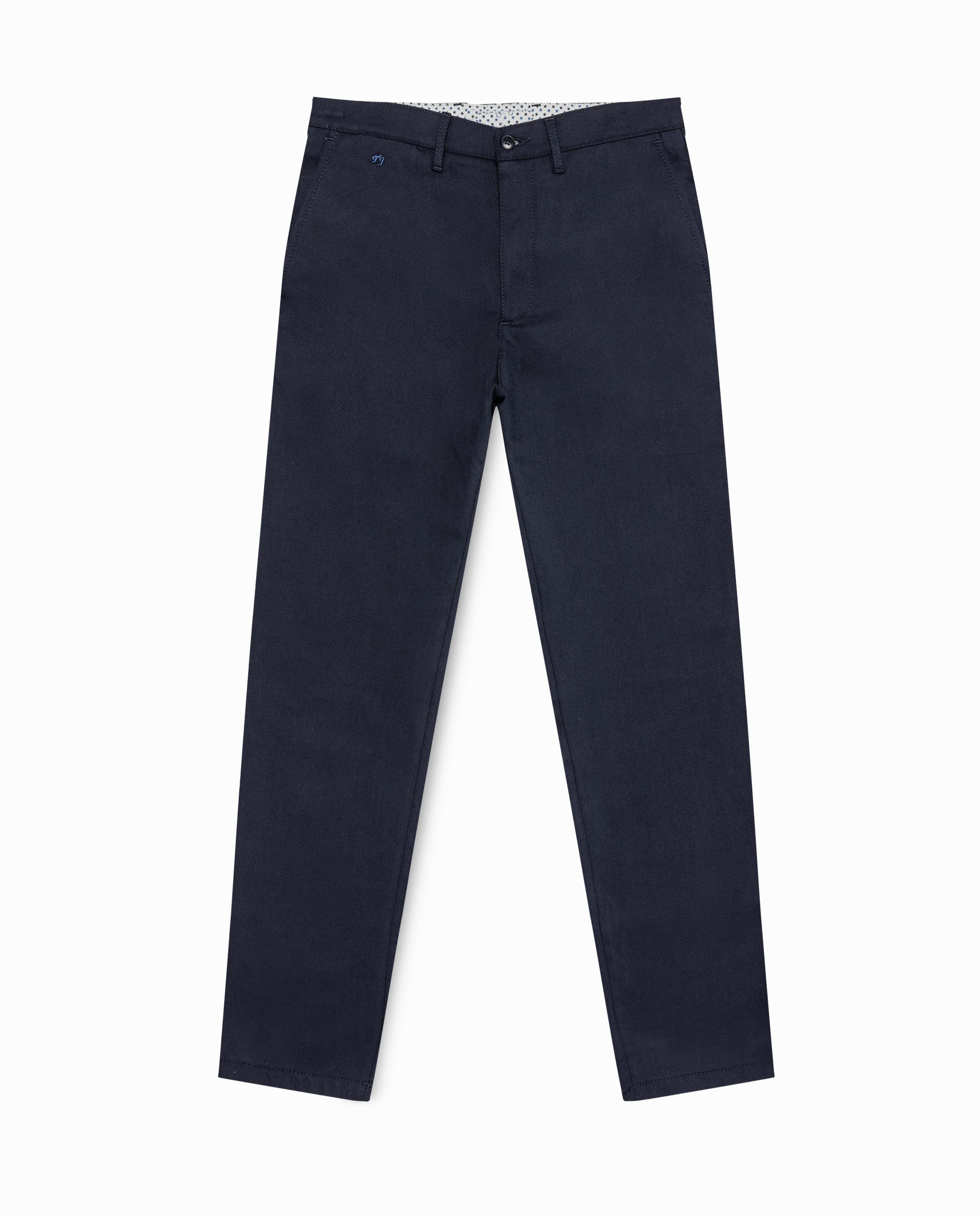 Rooted in the industrial heartland of Northern Italy, Olimpias has created a durable stretch cotton twill with an easy fit. Here in classic navy.