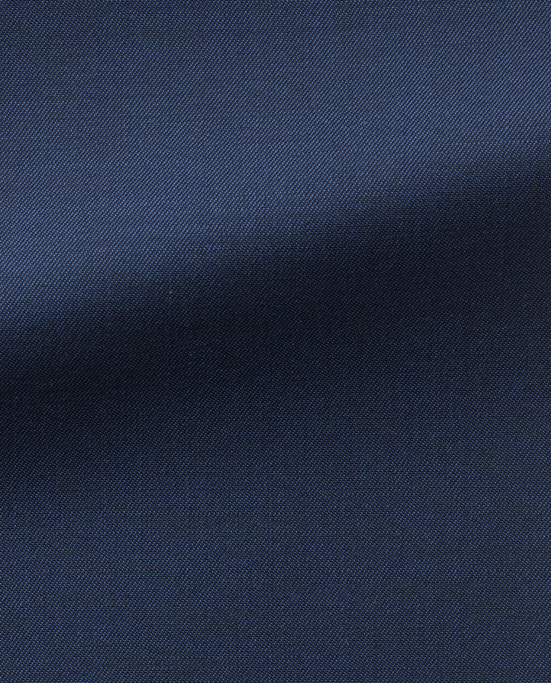 A Neapolitan blue weave featuring a four-season weight, a subtle two-tone effect, a light sheen and a smooth, cool and crisp feel. Made with: wool and mohair.
