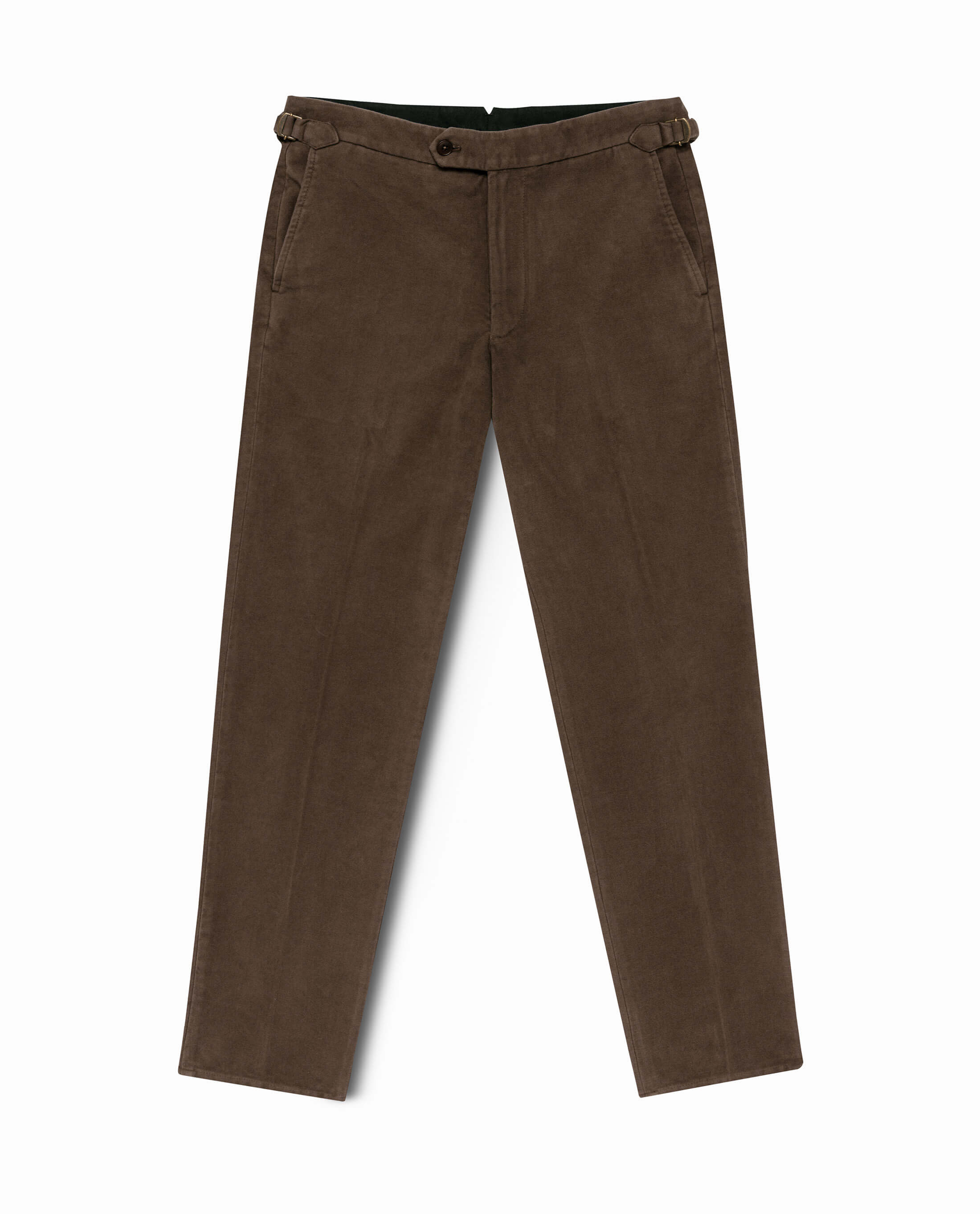 These oak brown chinos are modern meets durable. Made from moleskin cotton by Olimpias for a robust-yet-soft feel. Woven with stretch for an easy fit. Make these chinos your own with our many customization options to choose from.