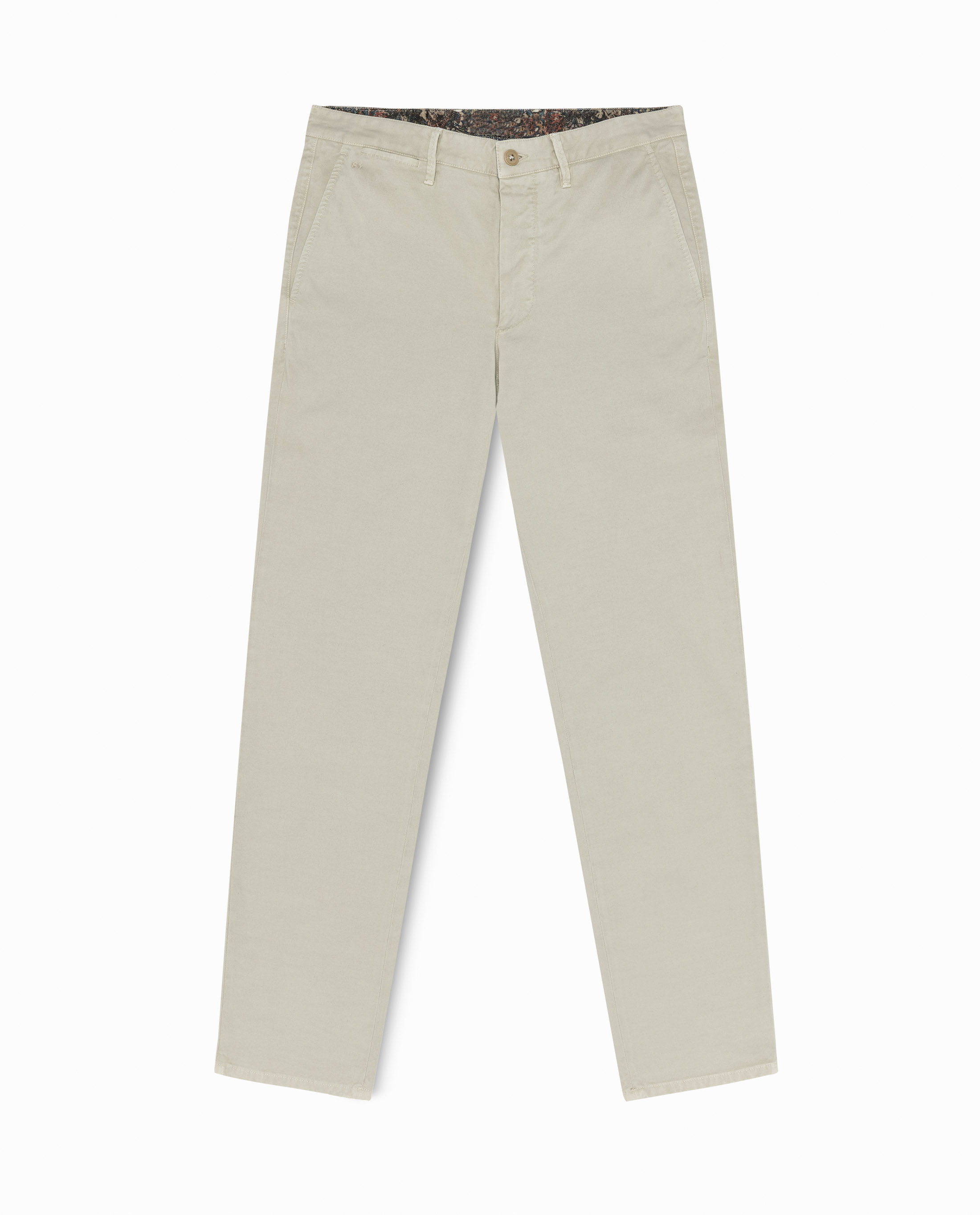 Olimpias created this stretch cotton twill in the industrial heartland of Italy. The broken twill features a zigzag weave for a solid, heavy-duty construction. This exclusive pair is dyed as a whole, resulting in a slightly washed color variation along the seams and extra color in the lining. Here in fine sand. A must-have for any season.
