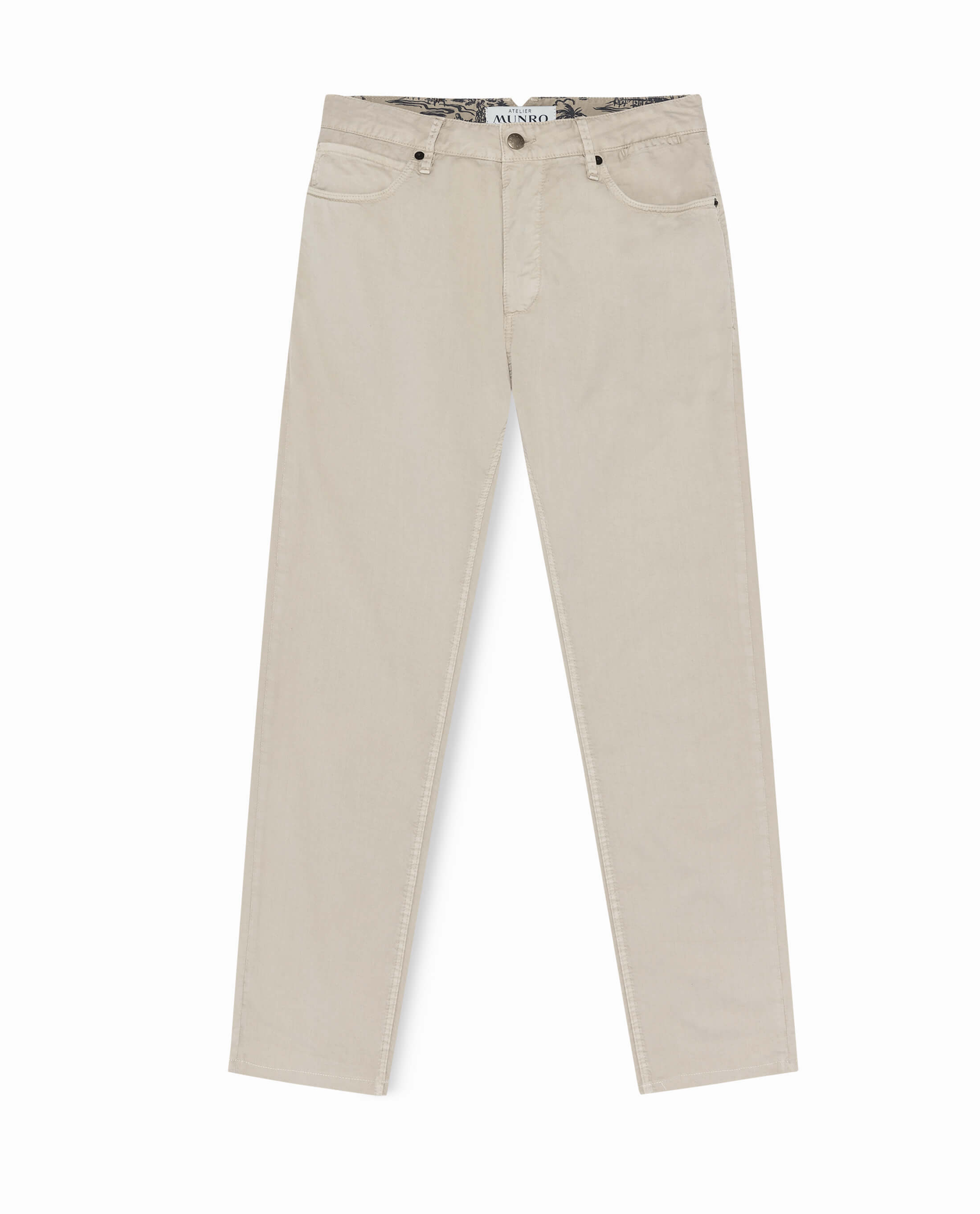 Olimpias created this stretch fine twill in the industrial heartland of Italy. The left-hand twill leaves your pair feeling softer with each wash. This exclusive pair is dyed as a whole, resulting in a slightly washed color variation along the seams and extra color in the lining. A fine sand variation suitable for informal and formal occasions.