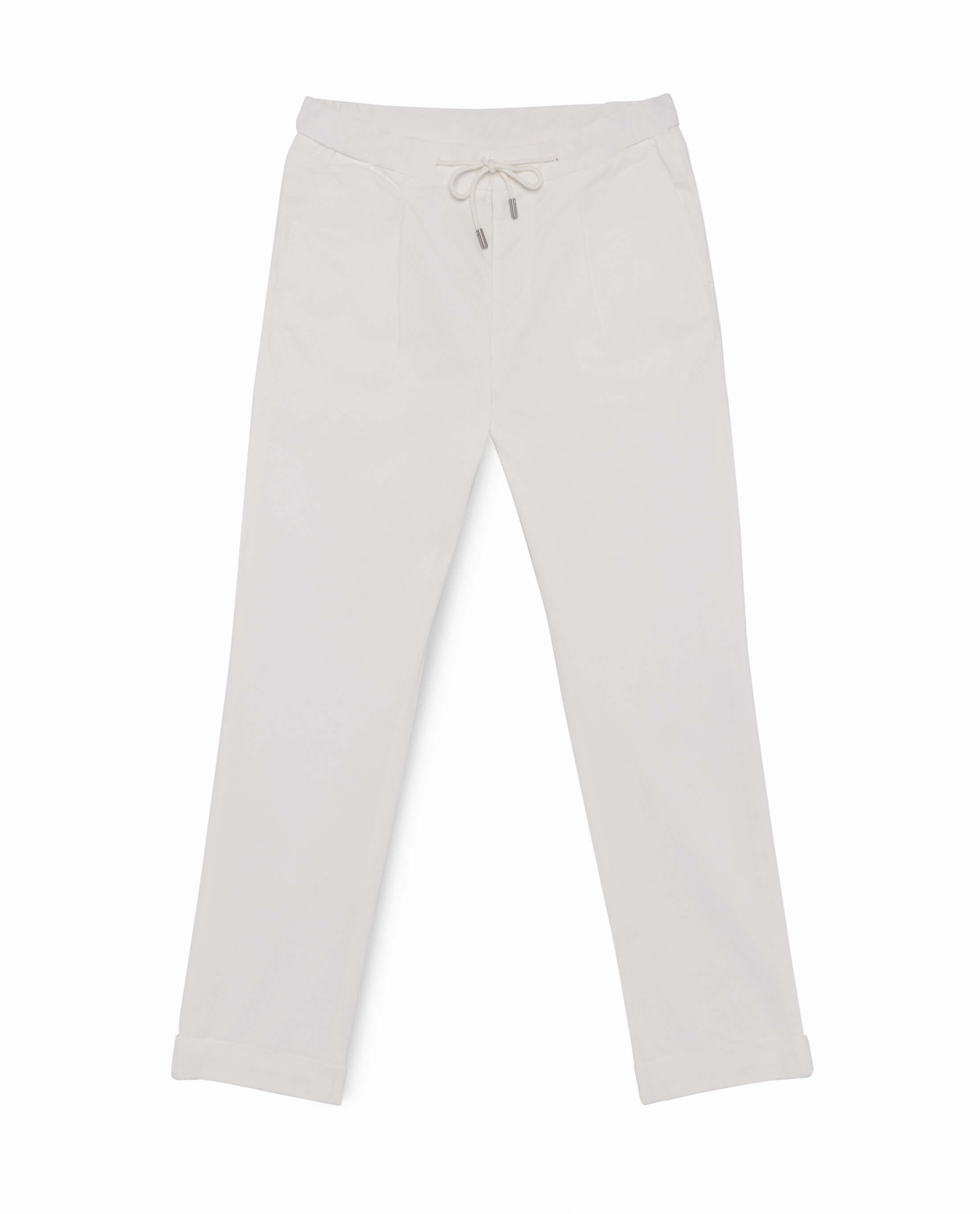 These off-white chinos are a must-have for any season. Made from stretch cotton by Olimpias, in a broken twill for a solid yet comfortable construction. Dyed as a whole to give a washed color variation along the seams and extra color in the lining. Designed here with a drawstring and single pleats. Make these chinos your own with our many customization options to choose from.