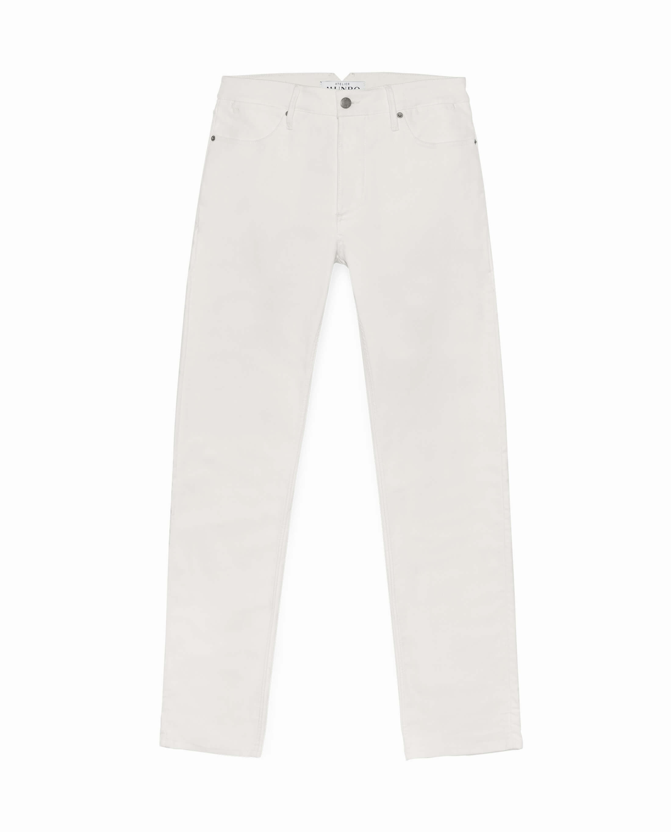Rooted in the industrial heartland of Northern Italy, Olimpias has created a durable and easy-fitting stretch moleskin – a heavy cotton fabric with a soft touch. Here in a fresh and modern off-white.