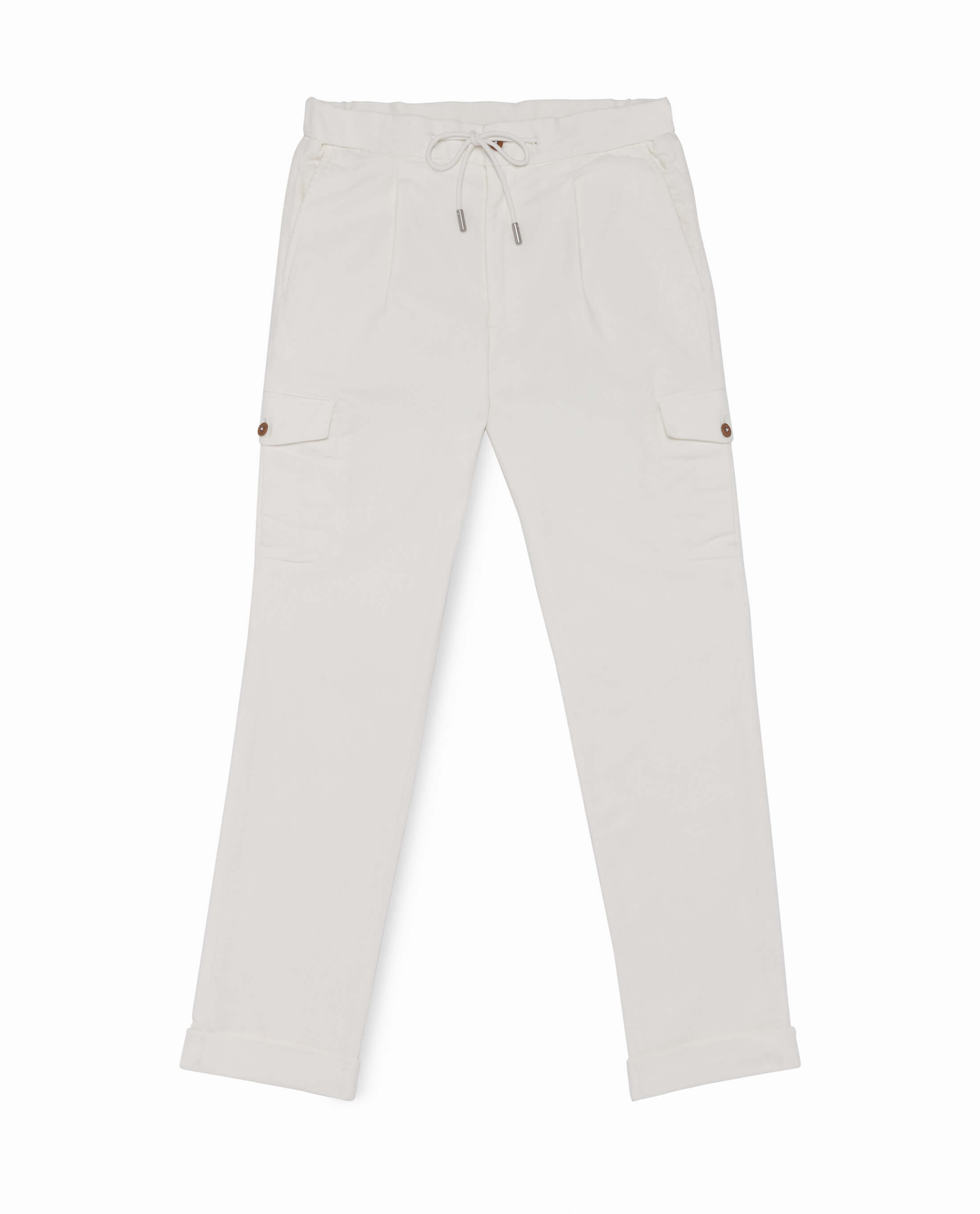 These fresh off-white chinos are a durable option for the office. Made from moleskin cotton by Olimpias for a heavier yet soft feel. Woven with stretch for an easy fit. Designed here in our more formal dress option with pleats, including after-dinner split, french fly, and front-pressed crease. Make these chinos your own with our many customization options to choose from.