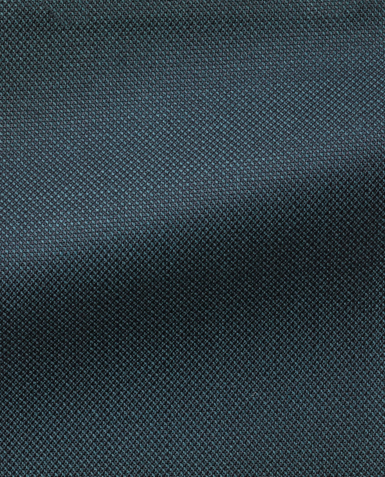 A limited-edition, dark greenishblue panama weave made from resilient, doubletwisted yarn. Featuring a fourseason weight and a smooth, cool and crisp feel. Made with: Super 130 wool.