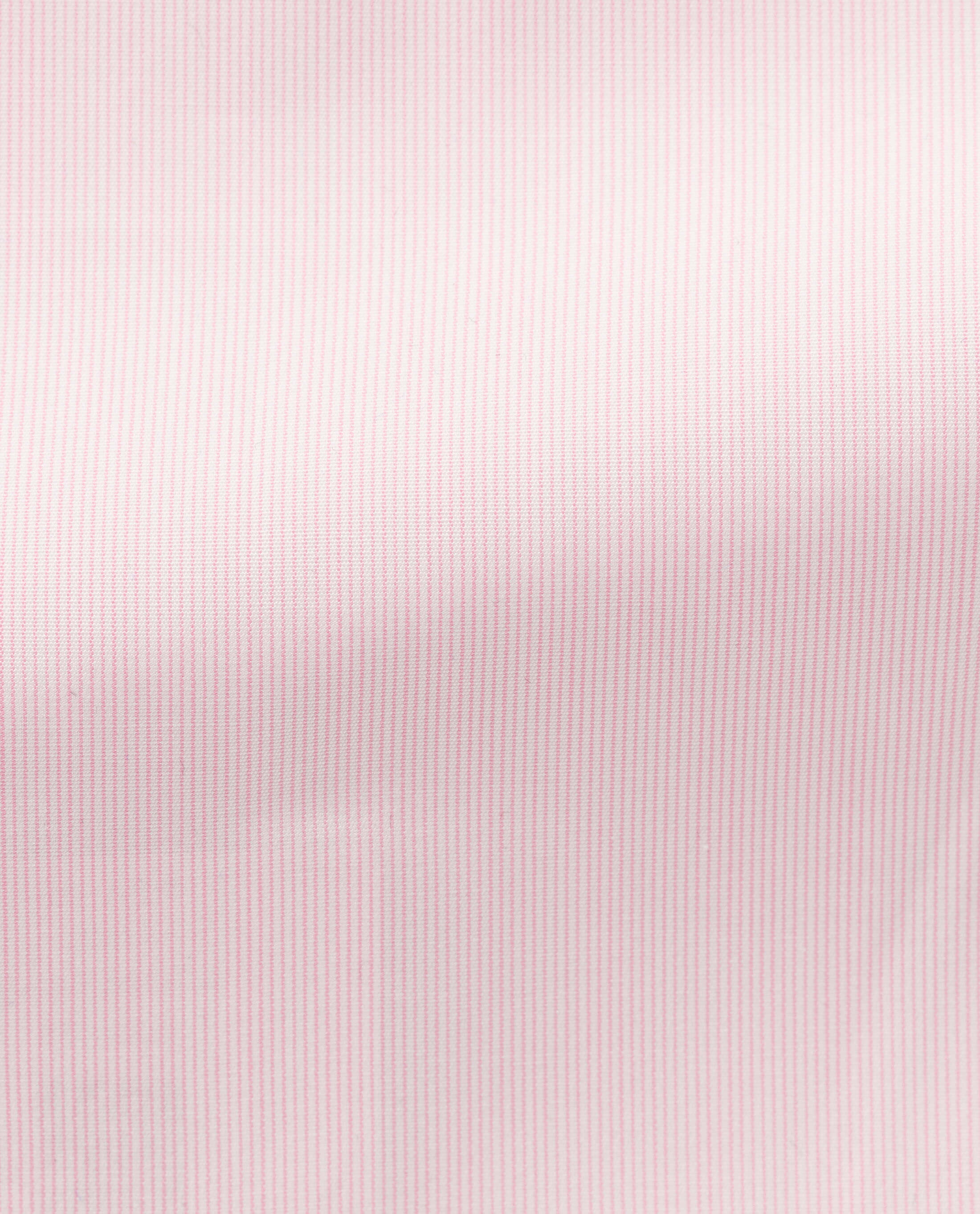 A pink poplin shirting in a dense yet lightweight fabric featuring fine hairline strips and a crisp feel.