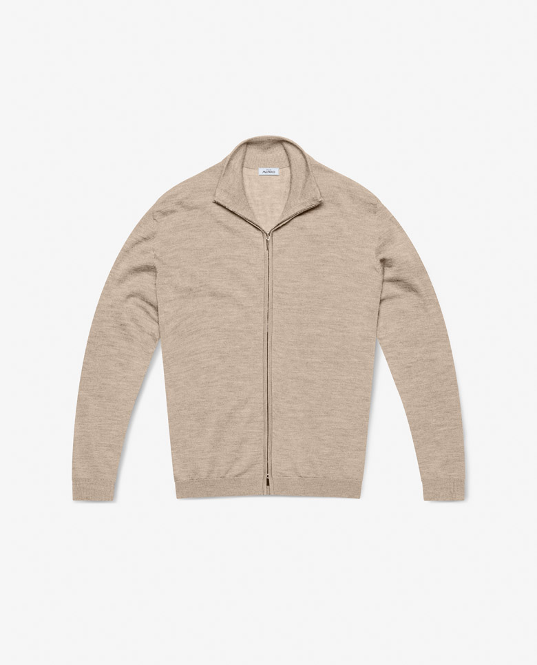 This seamless sand knit is made for layering. Crafted on 3D knitting machines from a blend of breathable Turkish cotton and soft Inner Mongolian cashmere. Designed here with a full-length zipper, in double ply for extra body. Make this knitwear your own from our customization options.