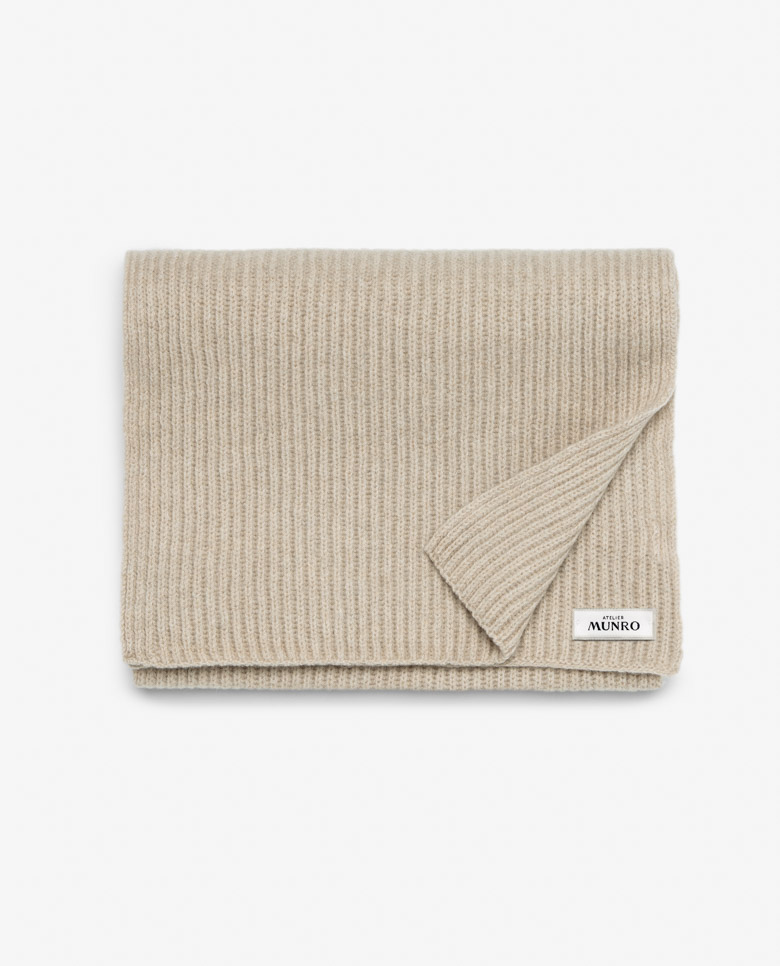 Wrap yourself up for winter with this sand ribbed scarf. Made from a high-quality blend of 90% Australian wool and 10% Inner Mongolian cashmere. The mix of ultra-fine wool with soft cashmere offers warmth you can wear every day.