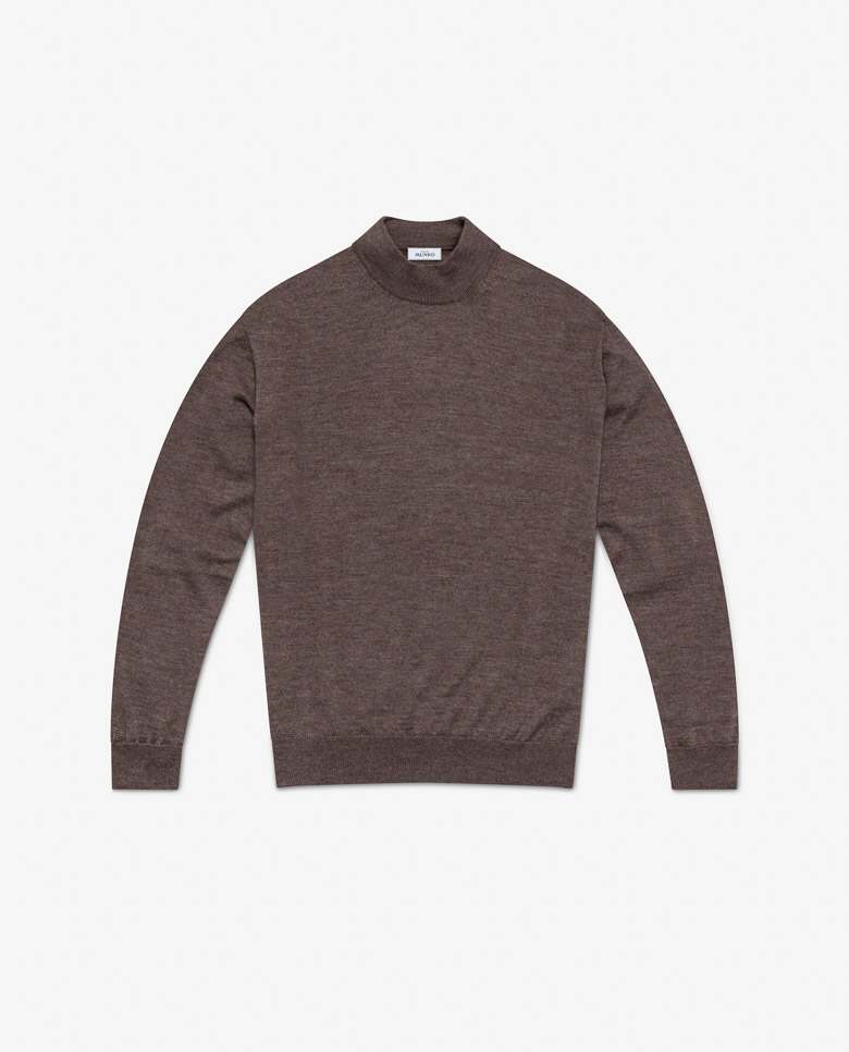 Taupe Cashmere-Silk Mock Neck Knit