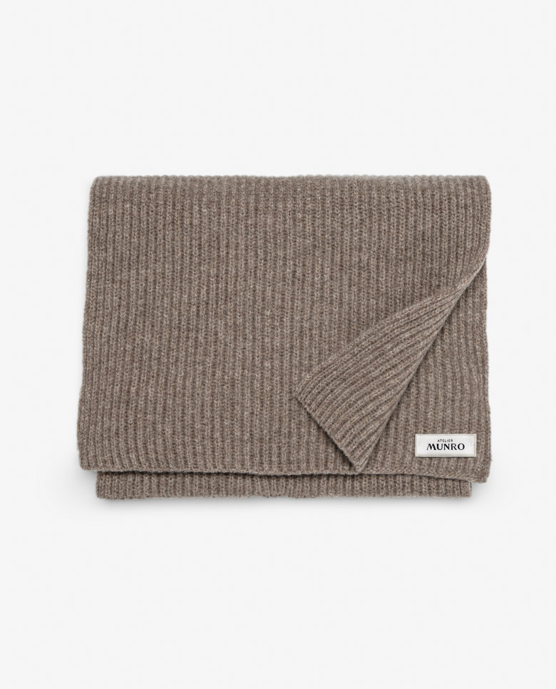 Wrap yourself up for winter with this taupe ribbed scarf. Made from a high-quality blend of 90% Australian wool and 10% Inner Mongolian cashmere. The mix of ultra-fine wool with soft cashmere offers warmth you can wear every day.