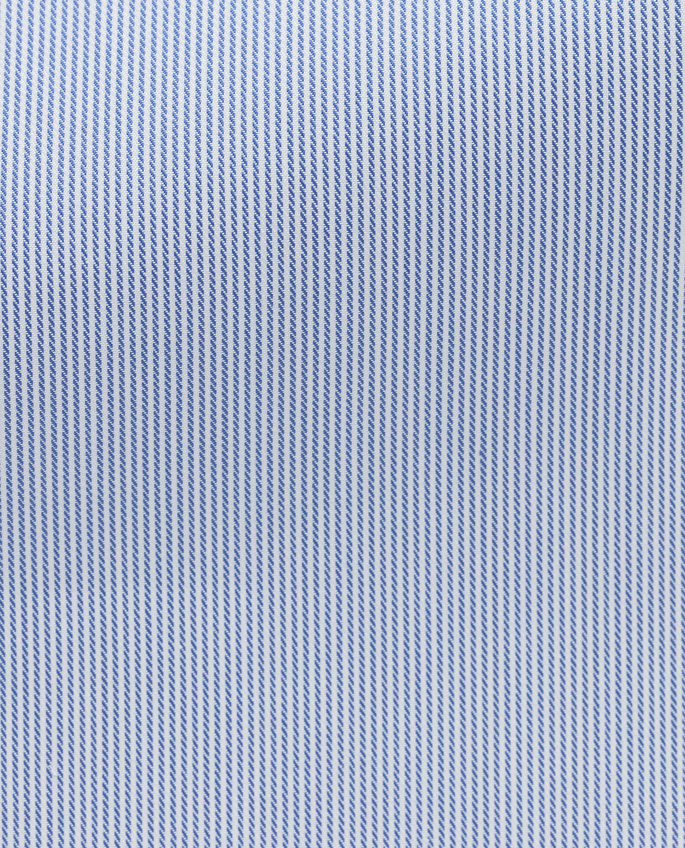 A wrinkle-resistant blue twill shirting with stripes featuring a vibrant luster, for use in all four seasons