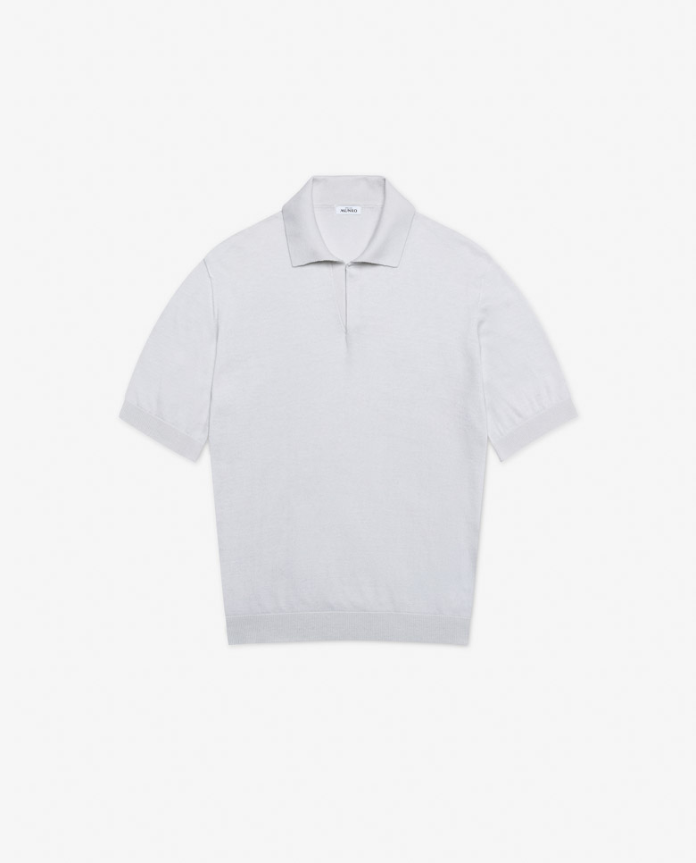 This white knit is summer friendly with a seamless finish. Crafted from a blend of breathable Turkish cotton and soft Inner Mongolian cashmere. Designed here as a short-sleeve polo without buttons, in single yarn for a lightweight look. Make this knitwear your own with our many customization options to choose from.