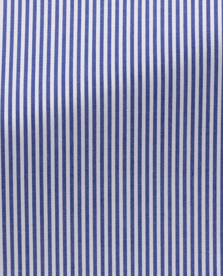 For classic office style that requires little effort on your part, button up this navy blue stripe shirt. From Thomas Mason's Journey collection, the twill fabric features fine cotton yarns of the highest quality. An easy-care finish helps make your garment resistant to creasing throughout the day and after prolonged storage in your suitcase. Designed here with a cutaway collar. Make this shirt your own with our many customization options to choose from.