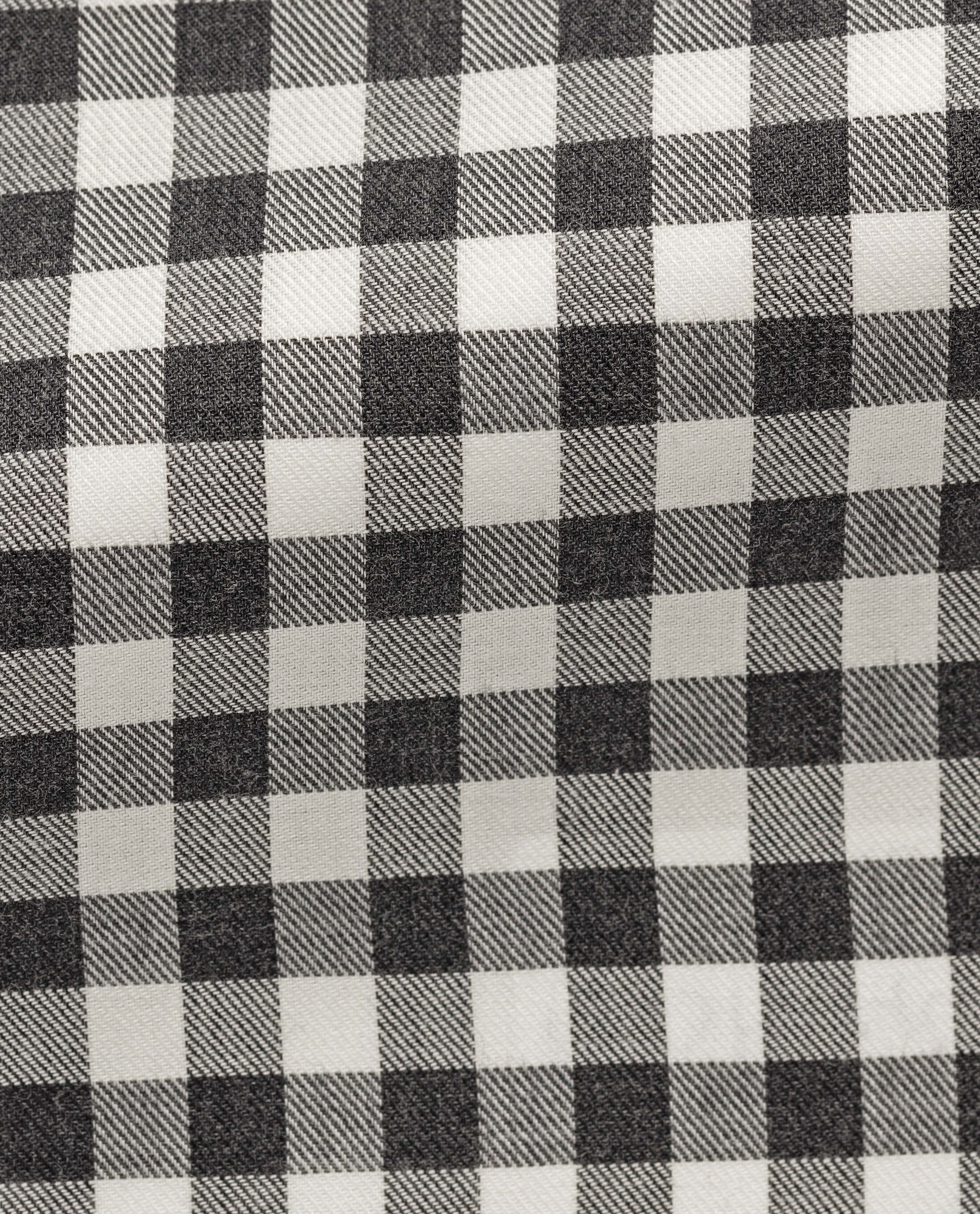 A limited edition gray and whited checked flannel with a soft, warm feel, and slight heathered effect.
