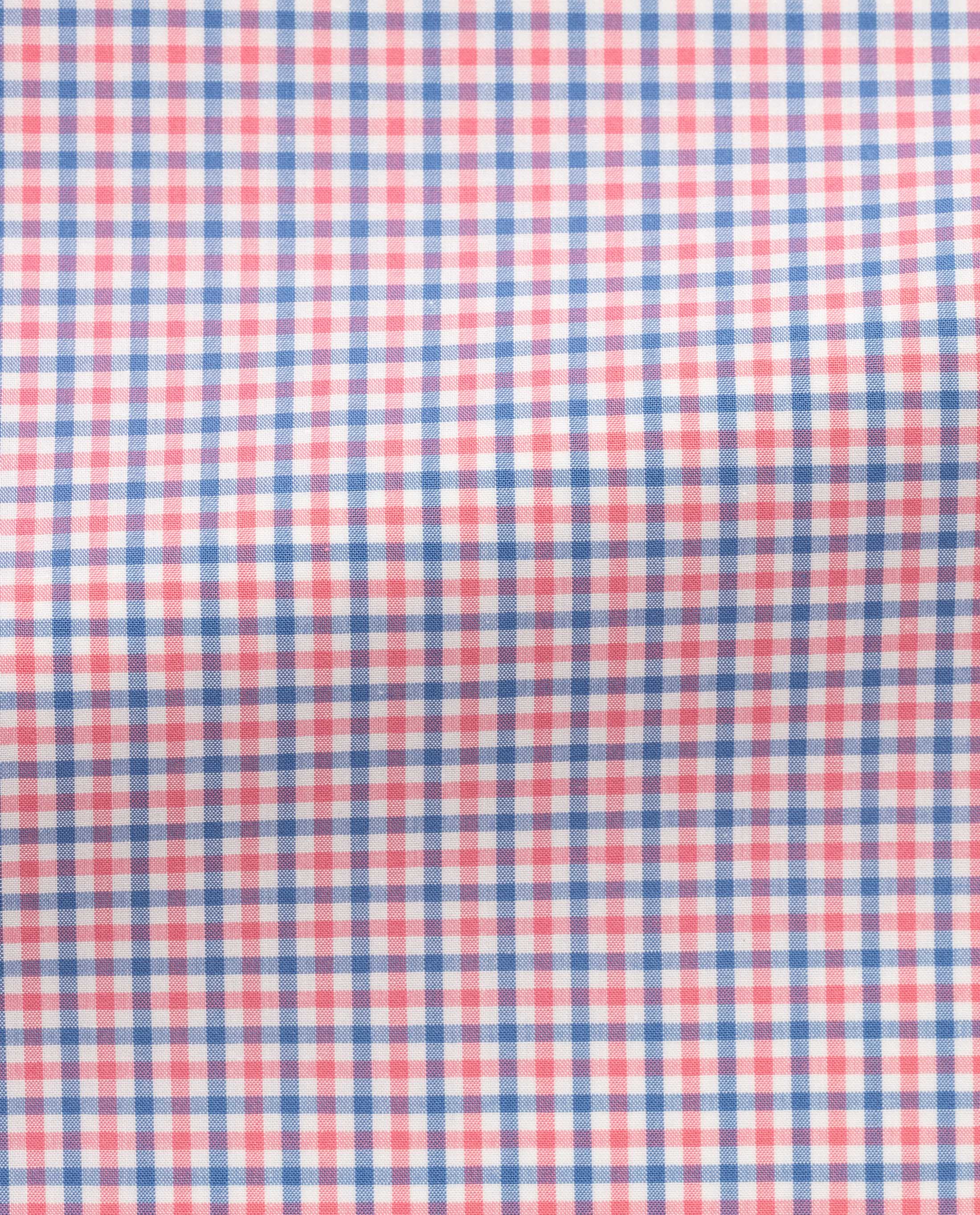This blue and pink tattersall check shirt is great for both business and pleasure. Made from a 2-ply cotton poplin with light breathability. Make this shirt your own with our many customization options to choose from.