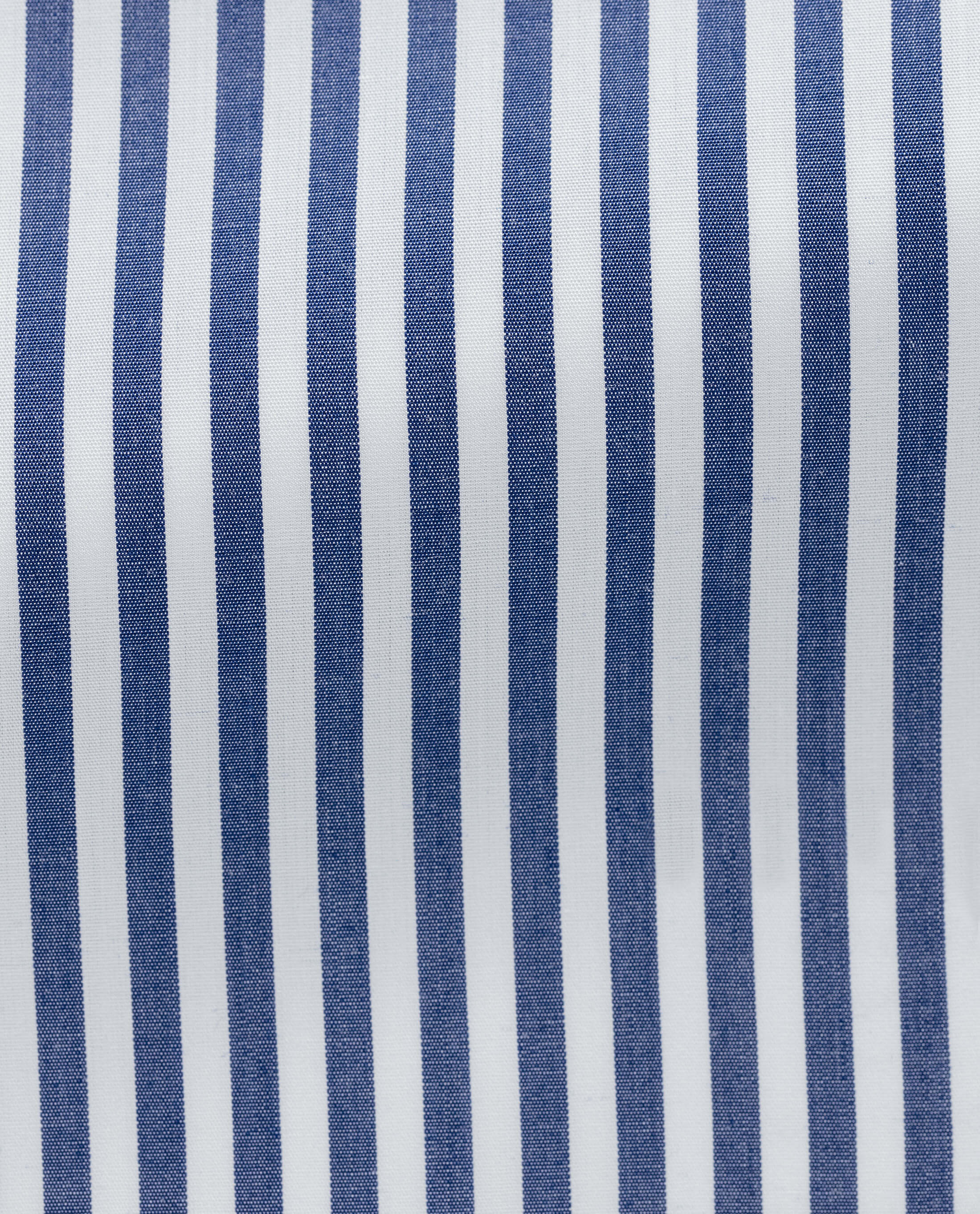 White cotton poplin with denim blue bengal stripe with soft handfeel, made of fine single yarns. Perfect for business.