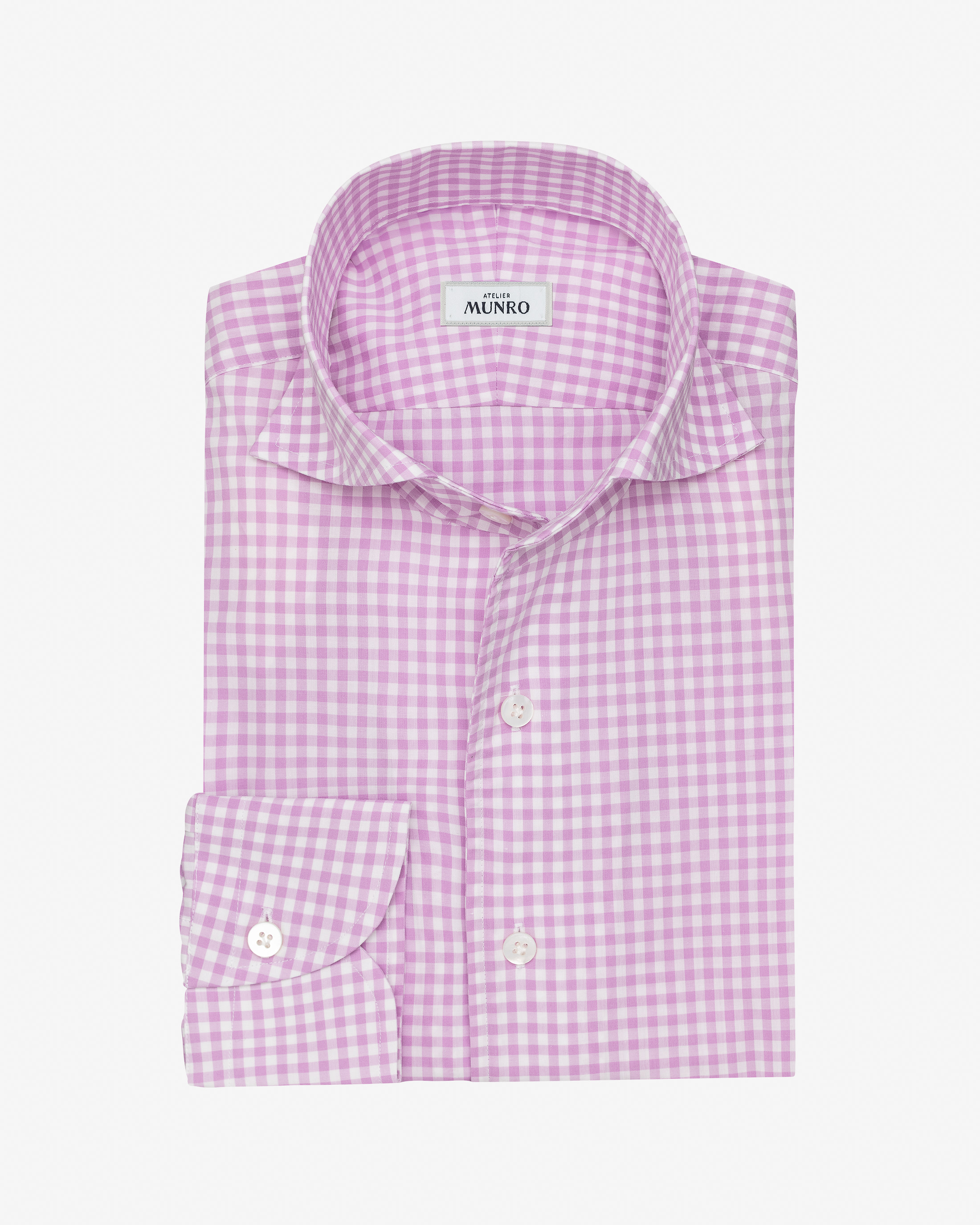 Featuring a lilac gingham, this shirt is ideal for anyone who appreciates a combination of confident colors and classic patterns. Crafted from a light-as-air superfine cotton poplin with equal warp and weft for a perfectly balanced, harmonious look. Prefer a different style? Every piece is made exclusively for you, with your choice of design options. 100% cotton Poplin weave Gingham Lightweight
