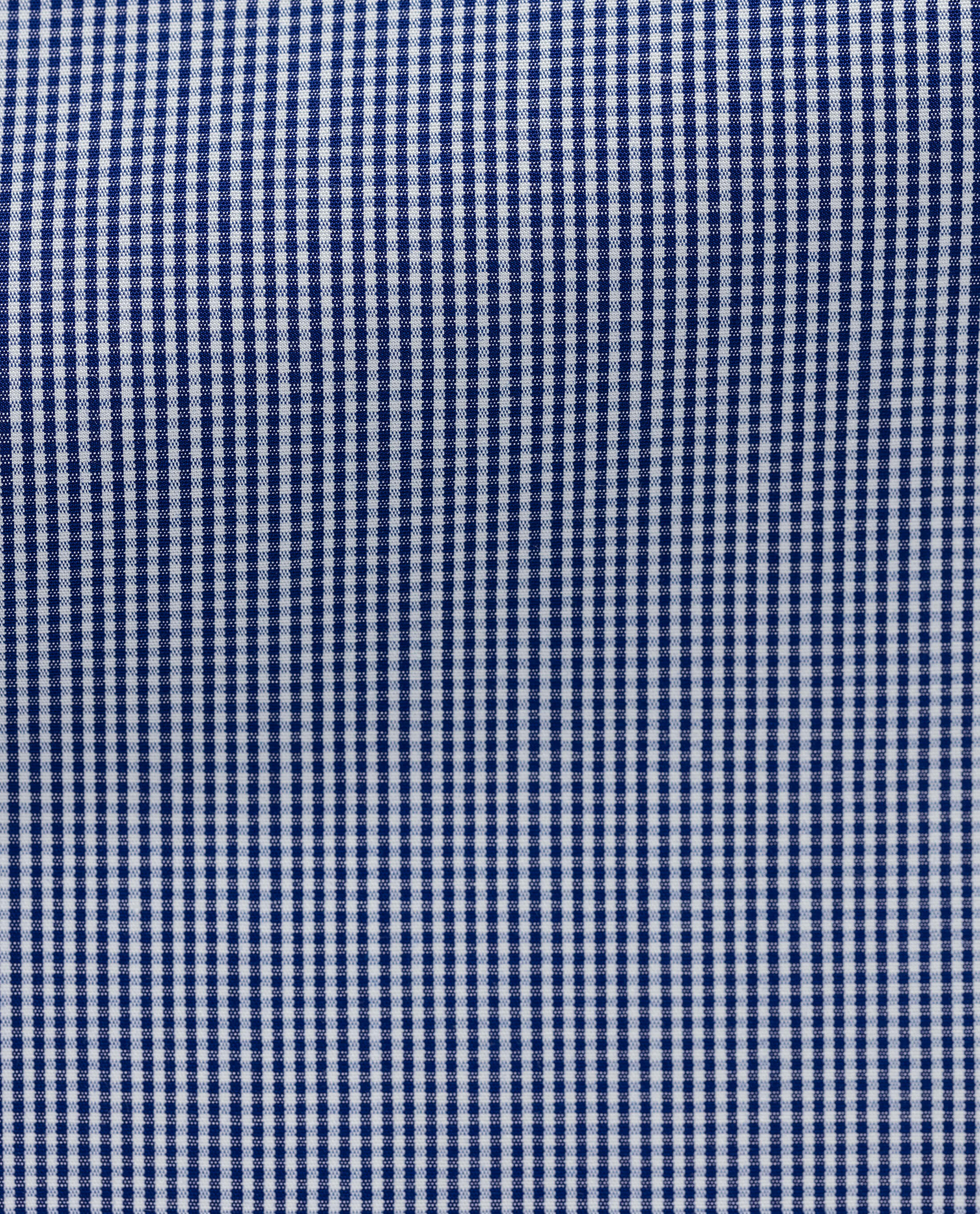 Navy cotton poplin vichy check, made of fine single yarns. Perfect for business.