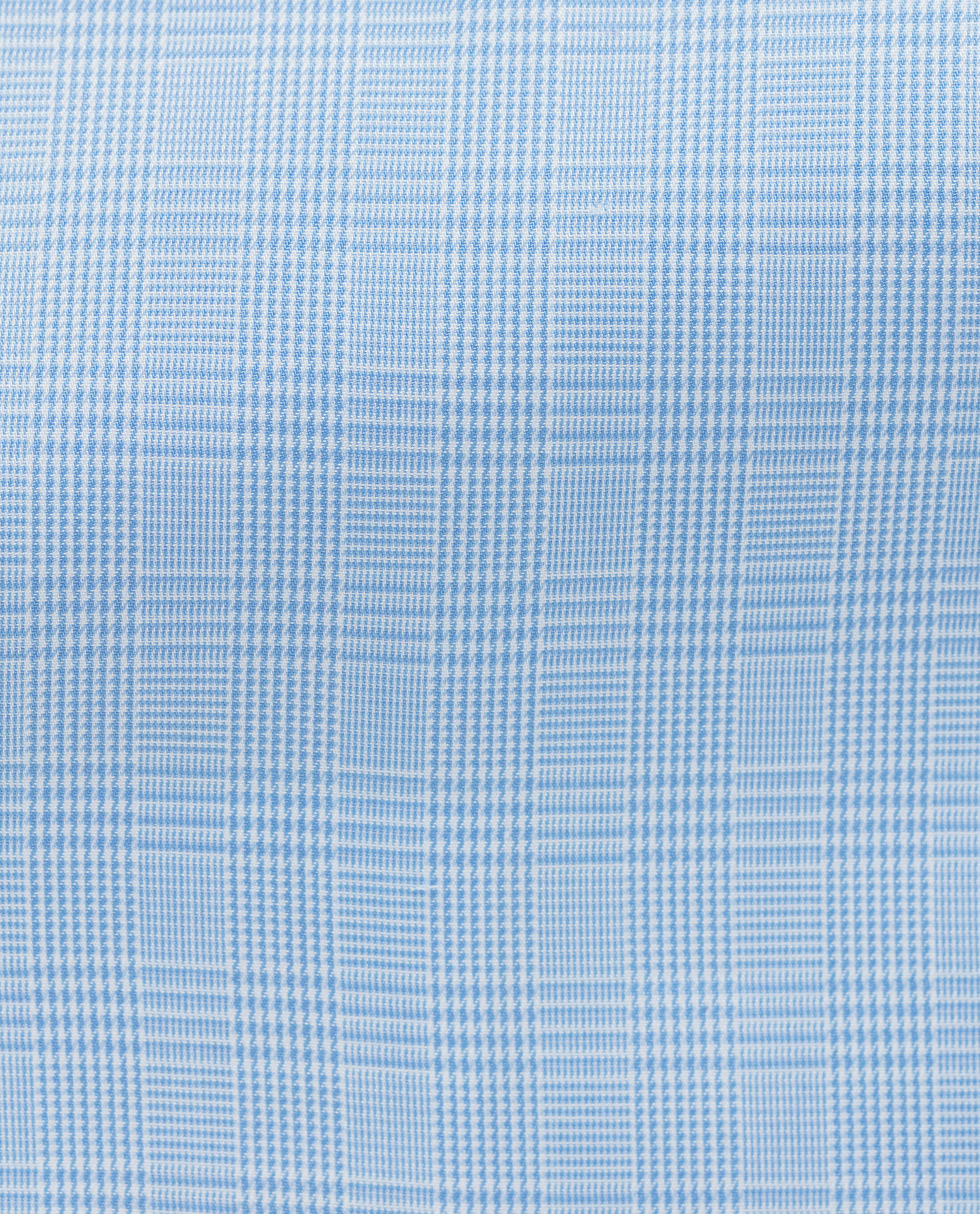 A woven light blue and white Glen plaid shirting for use in all four seasons.