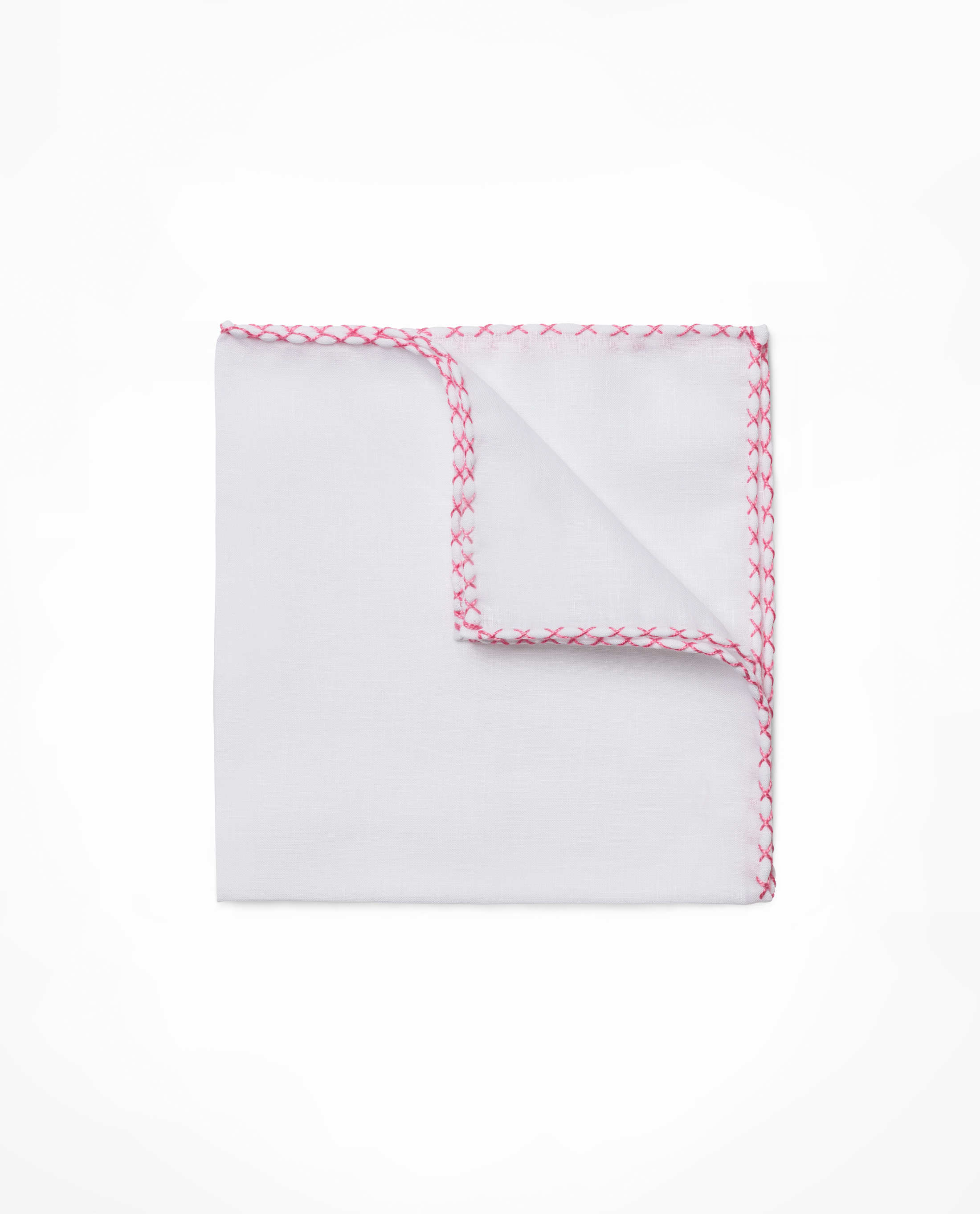 White Linen Pink Handstitched Pocket Square