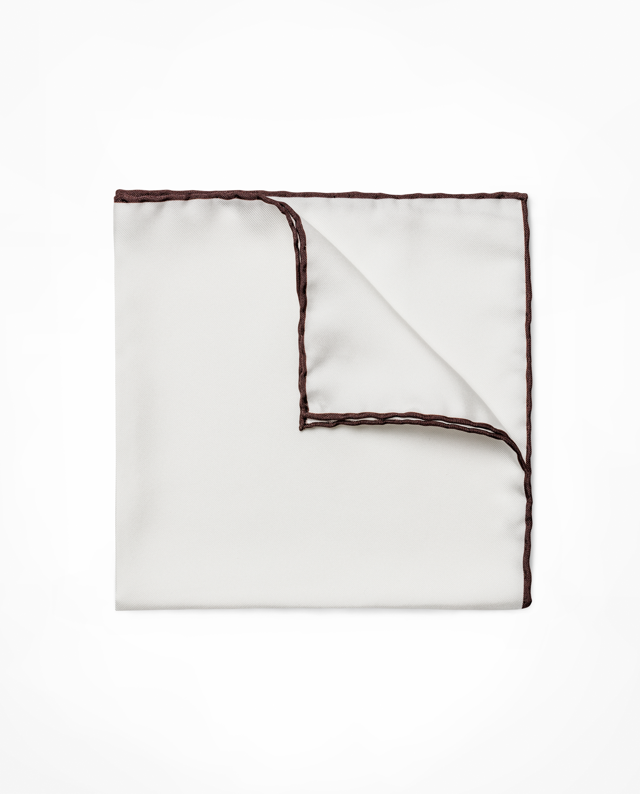 White Silk Brown Edged Pocket Square