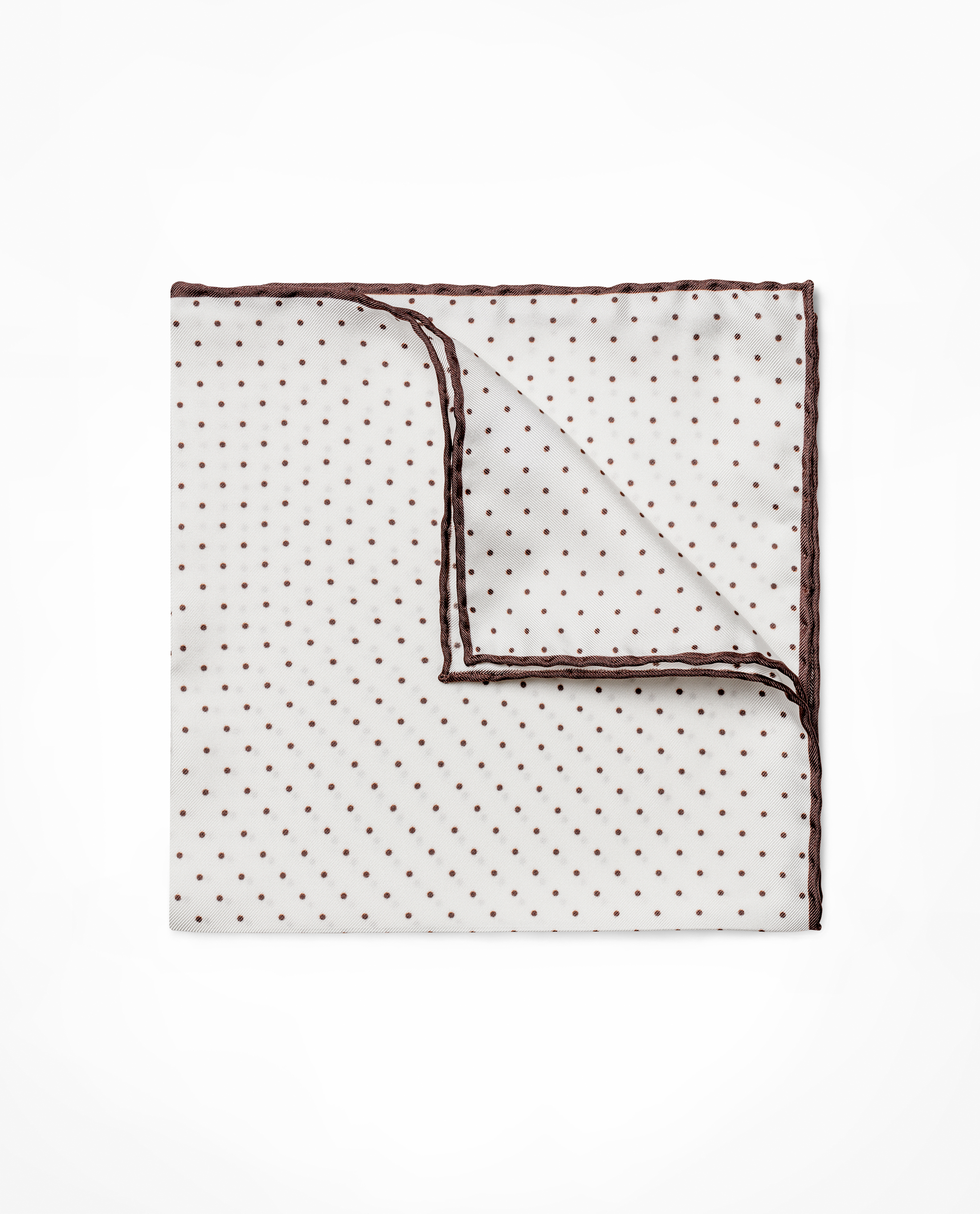 White Silk Brown Polka Dot Pocket Square