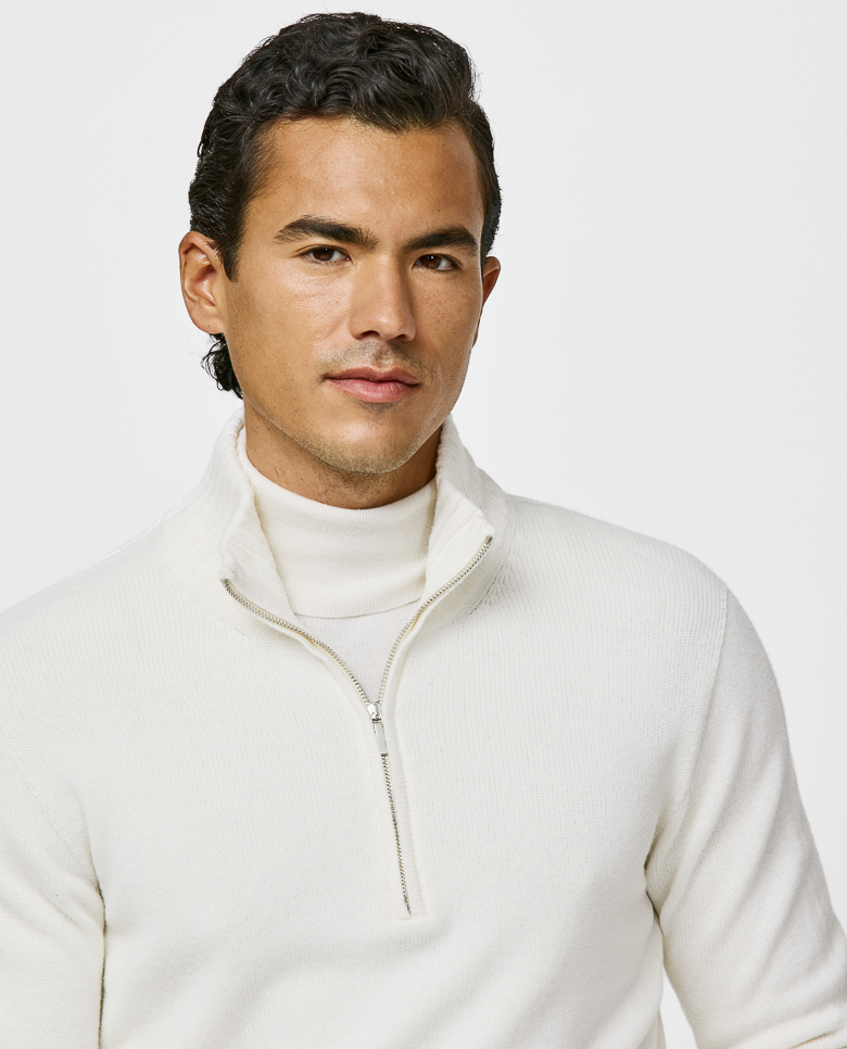 This winter white knit is a warm layer you can wear every day. Made from a mix of ultra-fine Australian wool and soft Inner Mongolian cashmere, 3D-knitted for a luxurious seamless look. Make this knitwear your own with our many customization options to choose from.