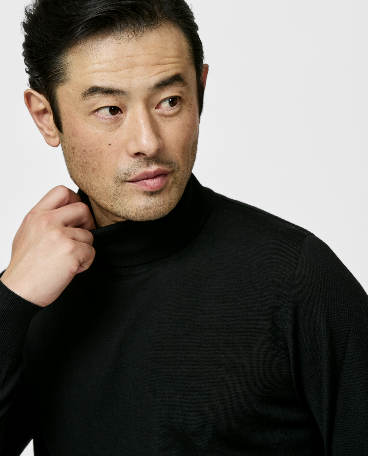 This black knit offers a luxurious layer with an element of lightness. The high-quality blend combines the drape and shine of silk with the softness of cashmere. Crafted on 3D-knitting machines for a sophisticated seamless look. Make this knitwear your own with our customization options. Cashmere & silk Superior drape Shine Soft feel