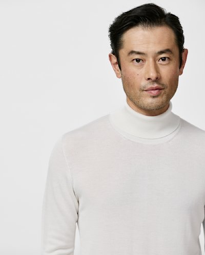 This off-white knit offers a luxurious layer with an element of lightness. The high-quality blend combines the drape and shine of silk with the softness of cashmere. Crafted on 3D-knitting machines for a sophisticated seamless look. Designed here as a turtleneck, in double ply for extra body. Make this knitwear your own with our customization options. Cashmere & silk Superior drape Shine Soft feel