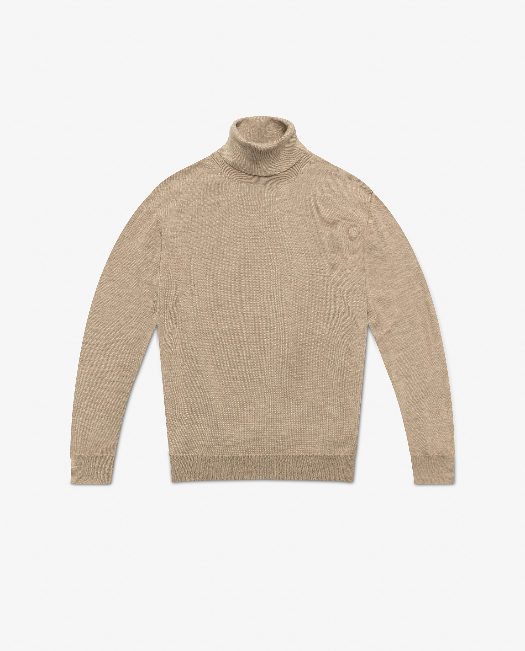 This sand knit offers a luxurious layer with an element of lightness. The high-quality blend combines the drape and shine of silk with the softness of cashmere. Crafted on 3D-knitting machines for a sophisticated seamless look. Designed here as a turtleneck, in double ply for extra body. Make this knitwear your own with our customization options.