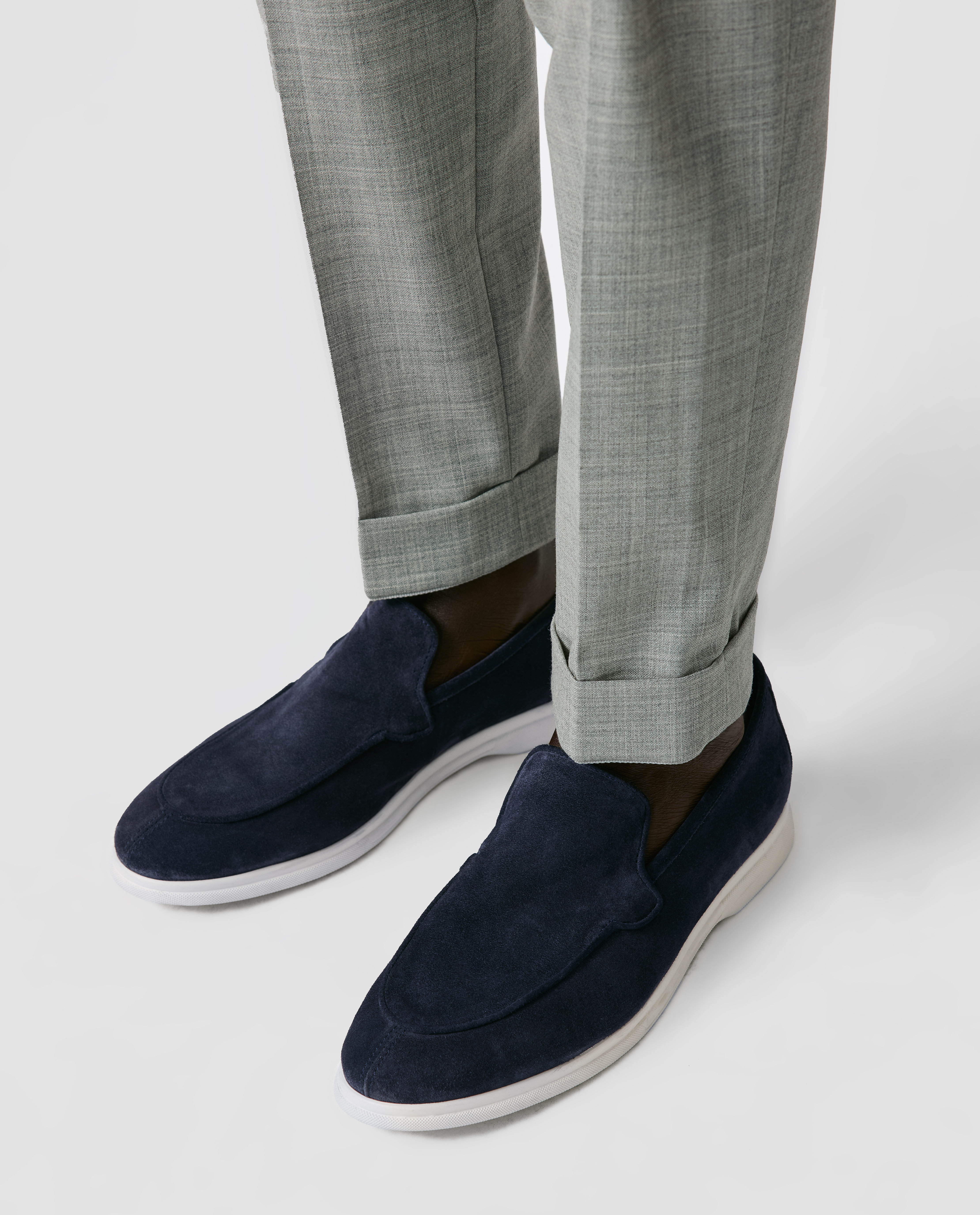 Step out in smart-casual style with these midnight blue city loafers. The light suede is made from flexible chrome-tanned calfskin with a short nap for a touch of softness. Designed here as a mid-top loafer with laces. Make these shoes your own with our many customization options to choose from. Handmade Light suede Calfskin leather Chrome tanned
