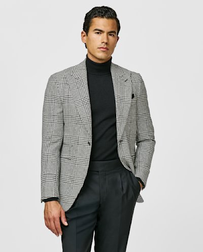 When you're looking for a winter neutral, it doesn't get more luxurious than this salt & pepper Glen plaid jacket. Crafted from a sophisticated mix of 3-ply merino wool, baby alpaca, and silk with an intriguing texture. Style it with a turtle neck, woolen trousers, and suede shoes to complete the look. Make this jacket your own with our many customization options.
