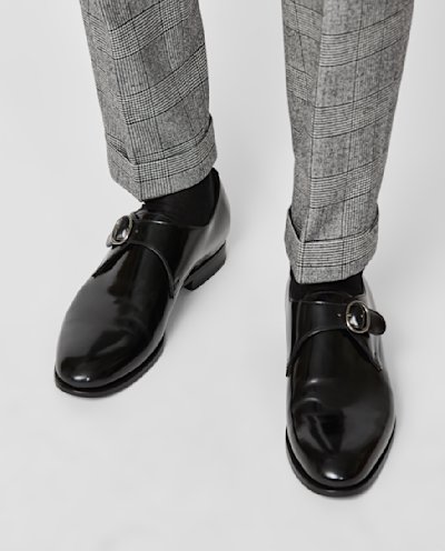 Lose the laces but stay looking refined with these black monk shoes. Handmade from chrome-tanned calfskin leather featuring a high-shine finish with an artfully-aged look. Designed here as a plain tip with a single strap. Make these shoes your own with our many customization options to choose from. Handmade Calfskin leather Chrome tanned High-shine finish
